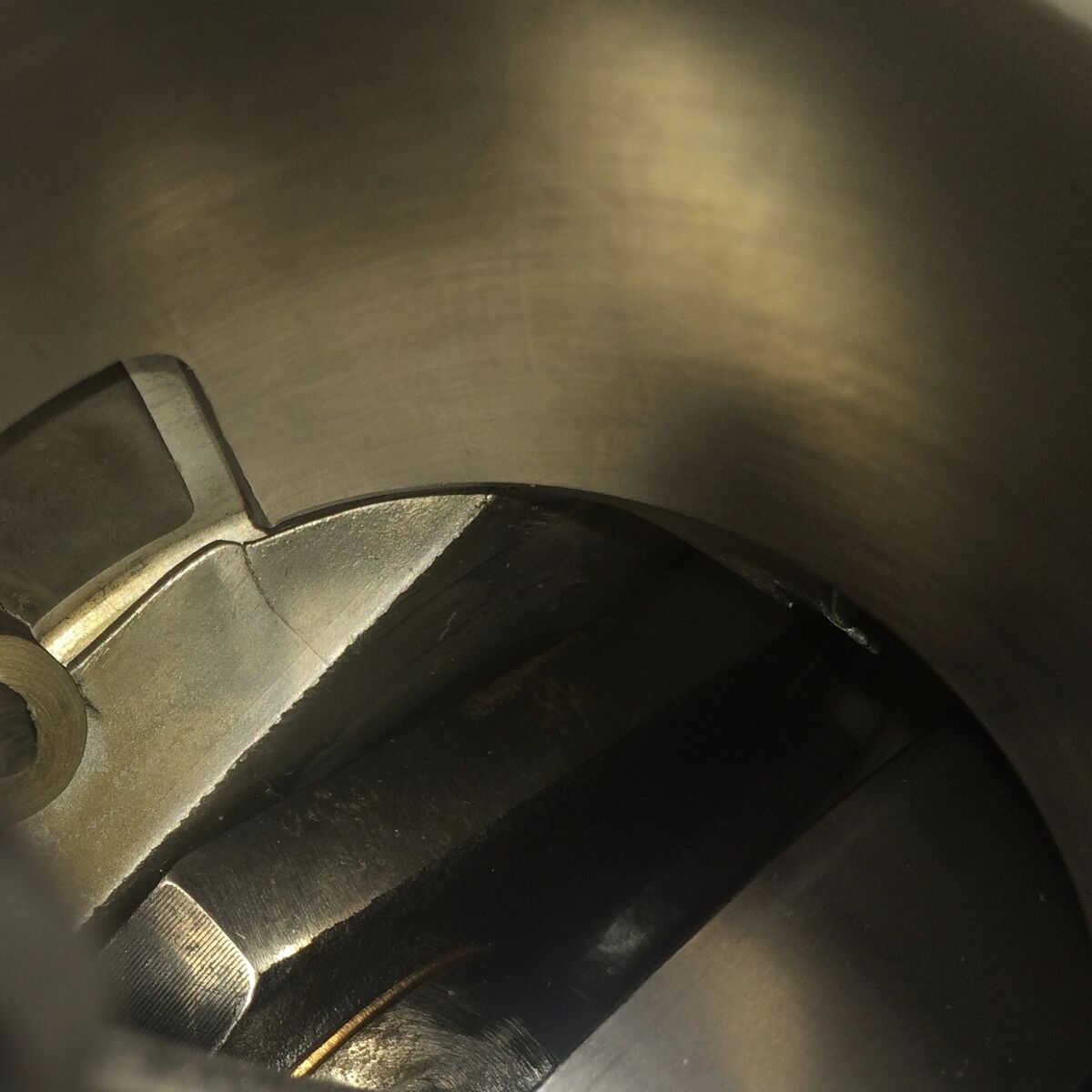 Hab das jetzt nochmal überprüft aber negativ,man spürt bei leichterem andrücken das er von unten Widerstand hat,habe jetzt mal bei Zylinder nebeneinander um den unterschied ca.zu sehen,wenn ich den Pinasco um so viel abtragen lasse,das wäre ca.bis zu dieser Schicht,müsste doch das ganze so funktionieren oder?