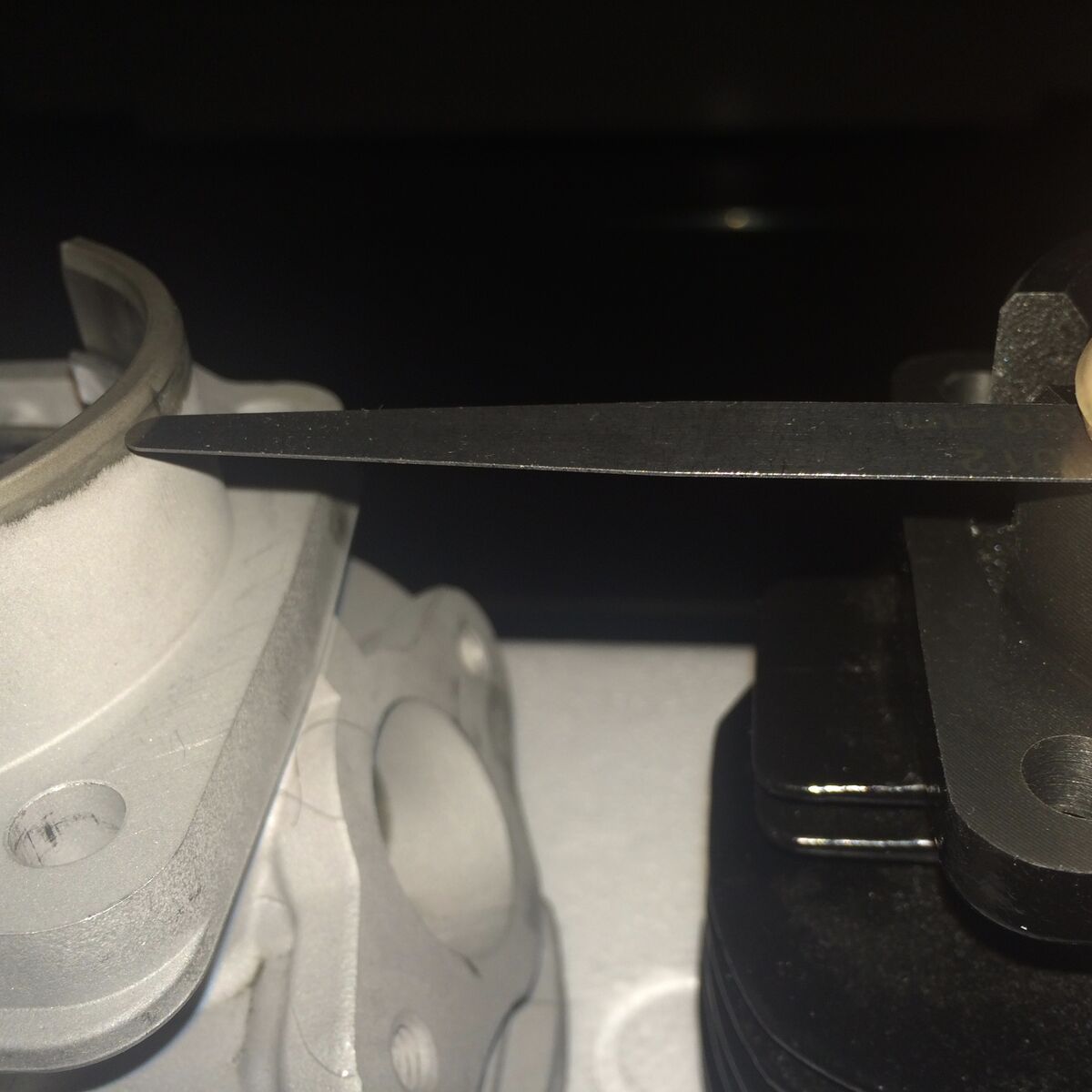Schlägt der Zylinder am Fuß denn irgendwo im Kurbelgehäuse an? Der Abstand zum planen Aufstecken ist ja nicht viel. Stehbolzen auch ganz drin? Weiß nun auch nicht mehr, wie rum die Bolzen da rein müssen bzw. kurze Seite zum Zylinder oder die lange Seite der Bolzen... Vielleicht hakt der Zylinder auch nur etwas... Geplant sieht mir die Dichtfläche eigentlich nicht unbedingt aus.