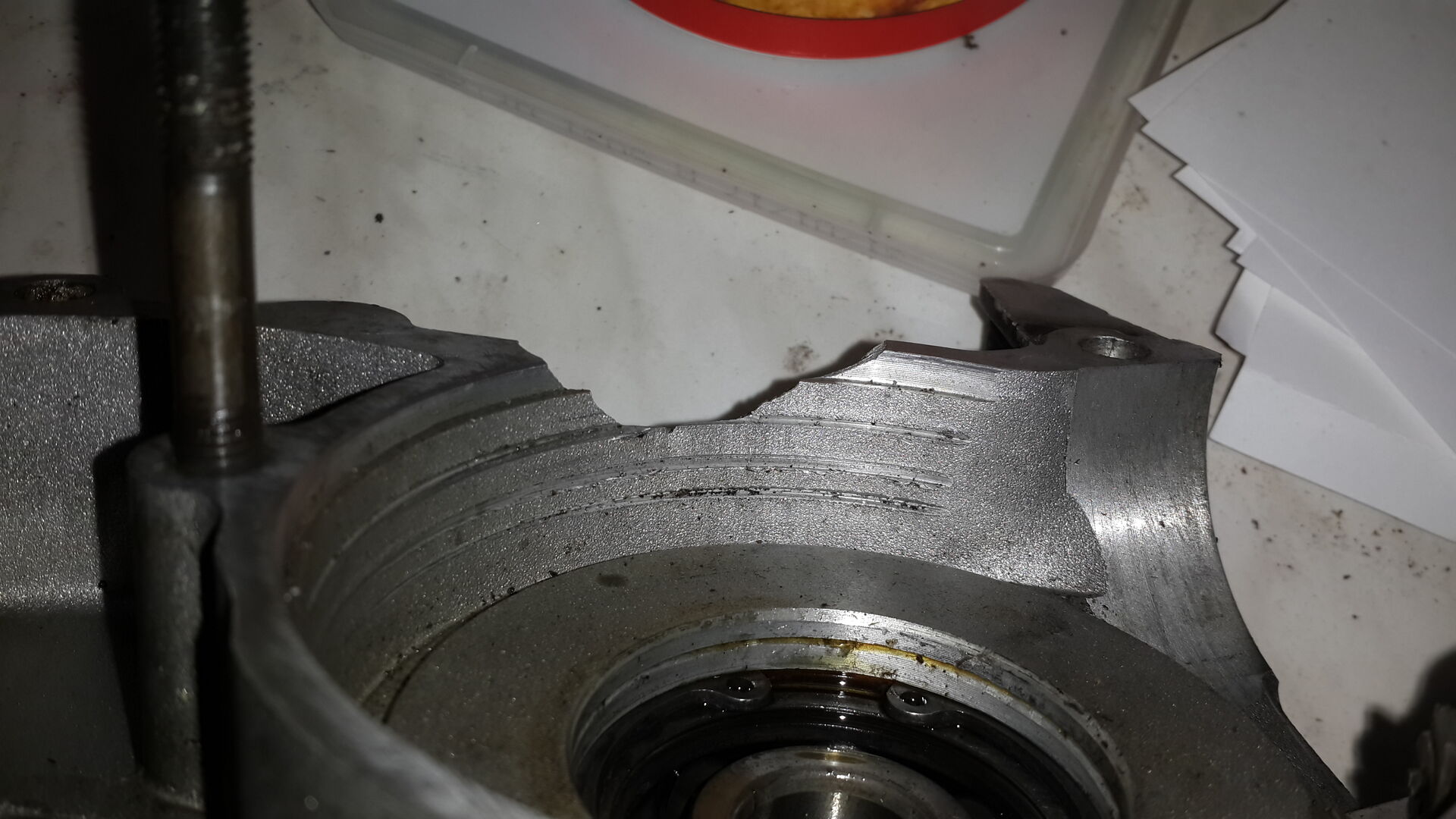 Der Drehschieber hat tiefe Rillen (ca. 1 - 1,5 mm tief), ebenso im Kurbelwellengehäuse.