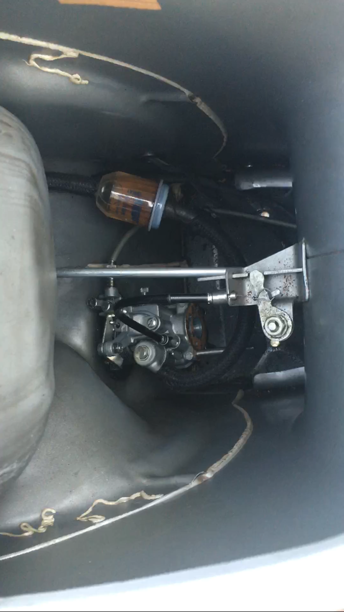 • Das dumpfe Geräusch kommt vom Luftfilter, ist normal. Die Bezeichnung des Vergasers steht an der Seite. Sauber ist der Filter nicht gerade......