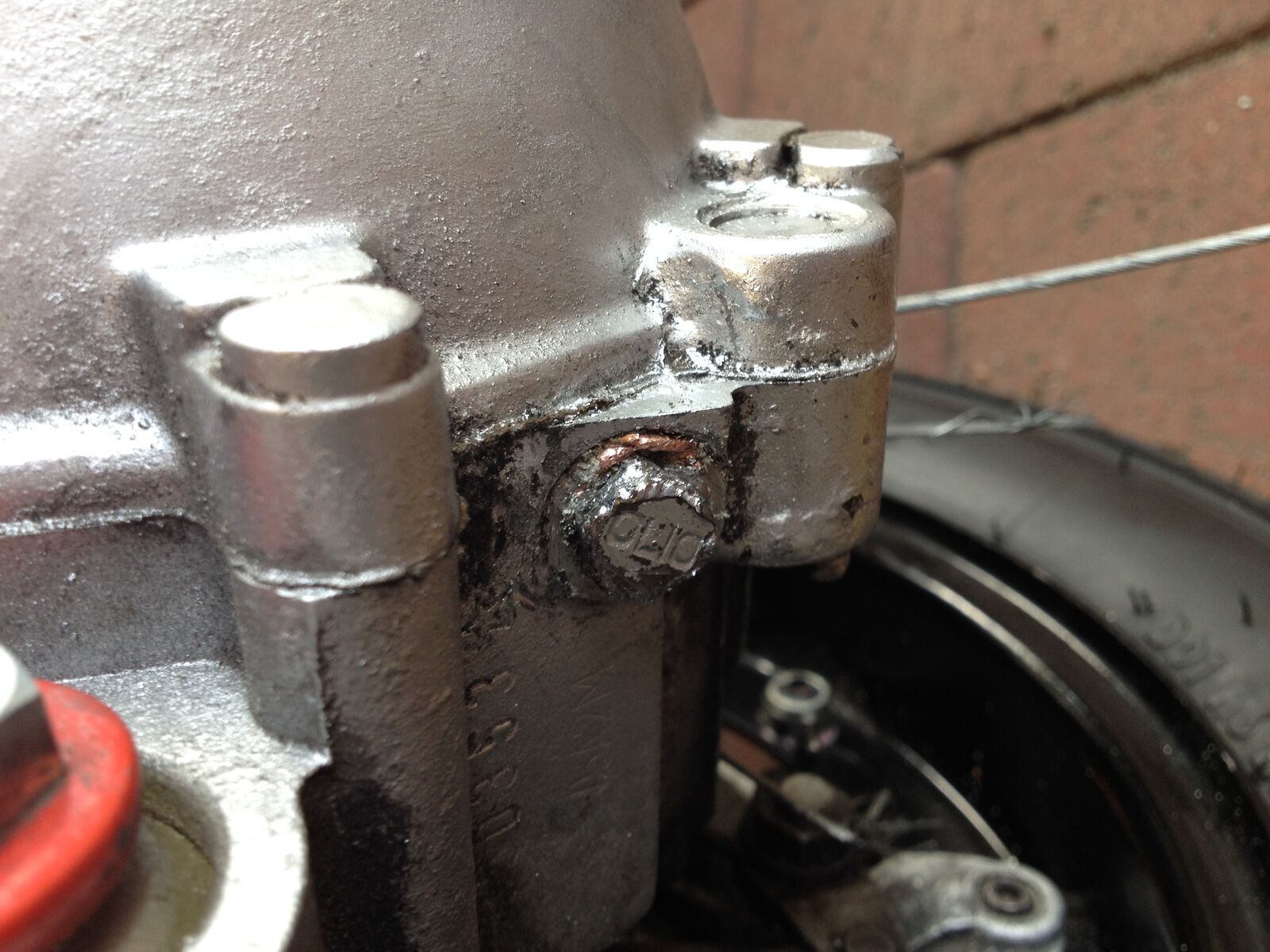 wenn ihr an der schraube rumhämmert, dann zerstört ihr das gewinde. die schraube ist kürzer als das gewinde im gehäuse. ist also semisinnvoll. die schraube sitzt auch vermutlich nur deswegen fest, weil der block mit felgensilber zugeklatscht wurde.