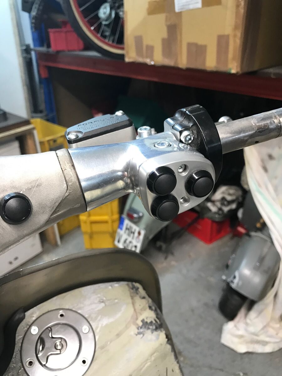 So in Sonntag in der Werkstatt kann ja Spaß machen. Erst Recht, wenn etwas dabei heraus kommt. Es gibt es ja wieder Motogadget Taster und so muss ich mir Ersatz für das Lambretta Lichtschaltergeraffel bauen.