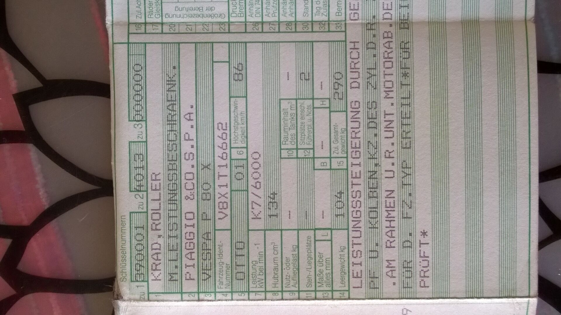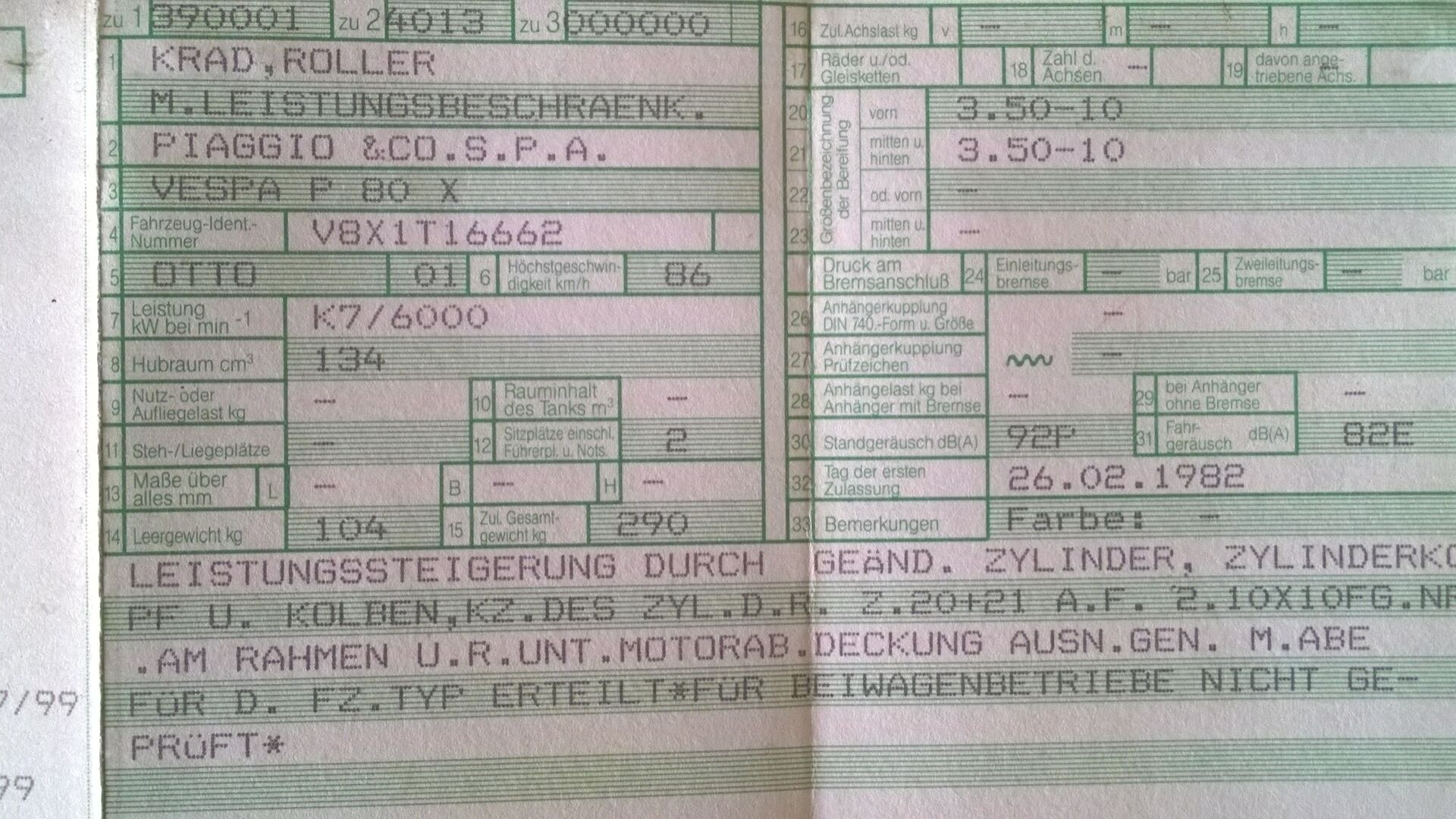 Habe auch eine 30 Jahre alte PX80 zu verkaufen. Mit großem Nummernschild Kl. 1. Meine würde ich aber nicht unter 2500 € verkaufen. Bin nun gespannt ob ich ein Angebot dafür bekomme.