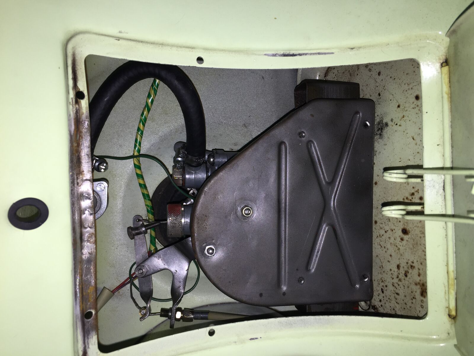 1. Eine Grundsatzfrage: ist meine Vespa nun eine Small- oder Largeframe? Im Forum habe ich gelesen, dass der liegende Zylinder für einen Largeframe spricht, der Vergaser unter dem Sitz jedoch anscheinend für einen Smallframe...? Bin verwirrt... ![]()
