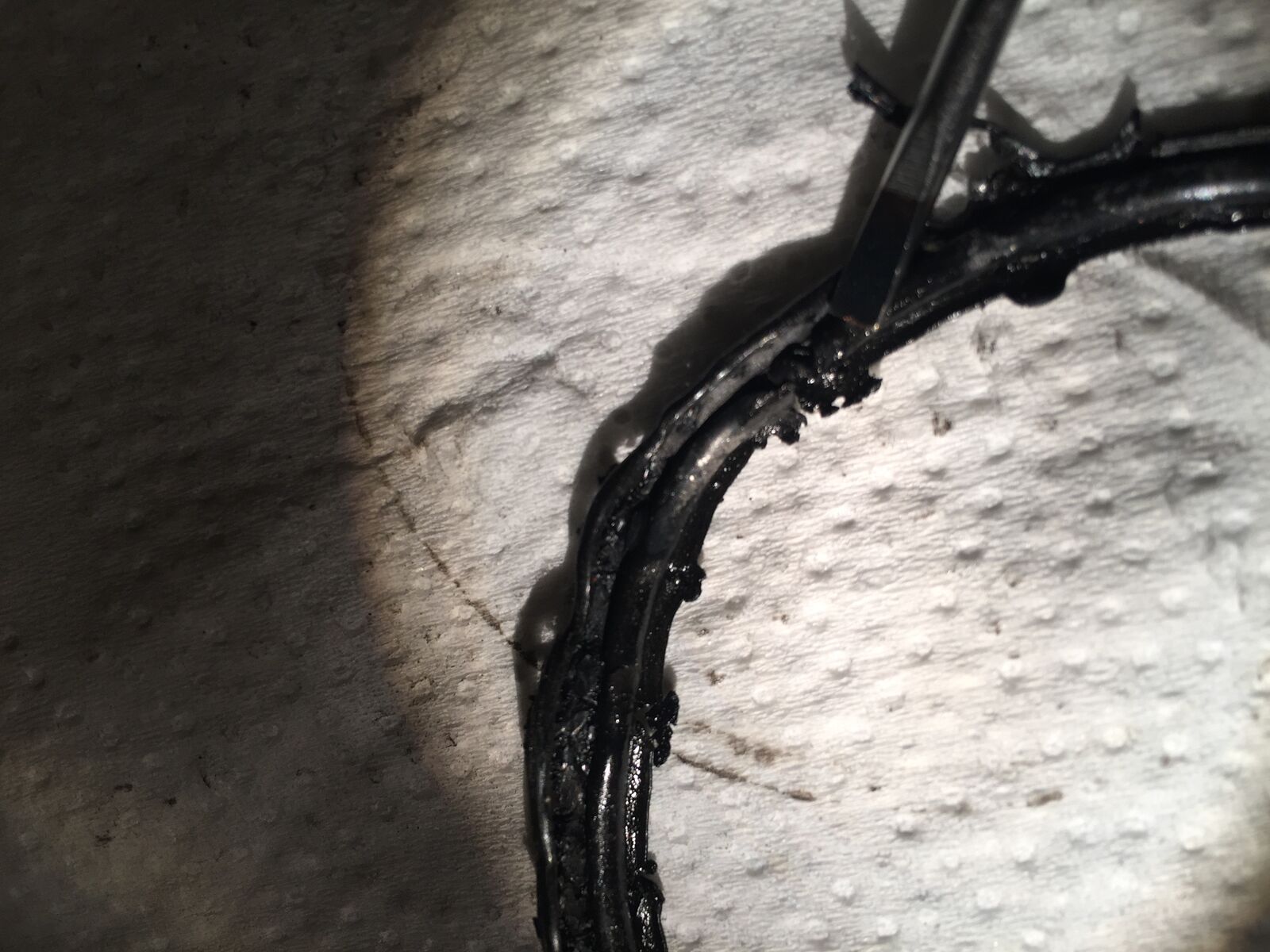 Die Kopfdichtung war hinüber und die Abgase haben sich für den kürzeren Weg entschieden.