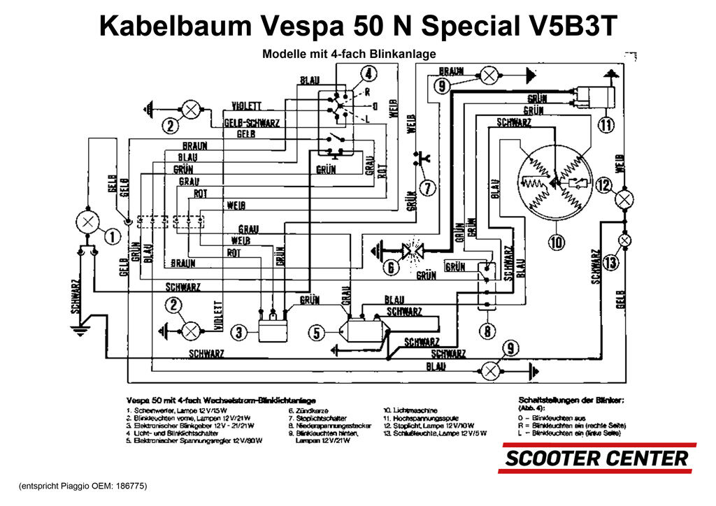 sei!anbei der [lexicon='Schaltplan',''][/lexicon] V50 Spezial mit 4 fach Blinker (österr. Version) und vom SCK die deutsche Variante