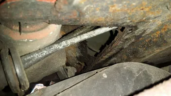Der Rost macht sich leider am Trittbrett und an der Stelle wo die Seilzüge vom Motor in den Tunnel gehen breit. Muss definitiv geschweißt werden.