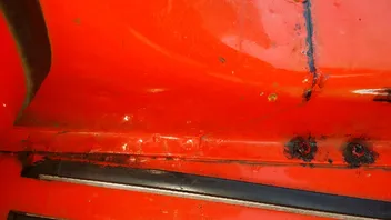 Die Stelle am Trittbrett wo das kleine Stück fehlt hatte sie schon beim Kauf (2011).