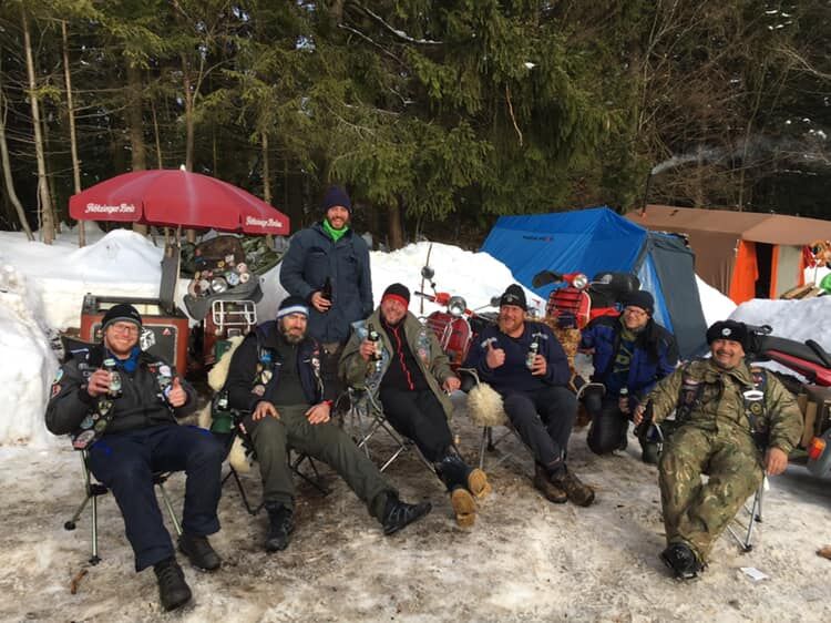 Zwei Gespanne, mehrere Solo Mopeds, und dann viele viele richtig harte Biker...die im Schnee Spielen^^ Chillen, Feiern,