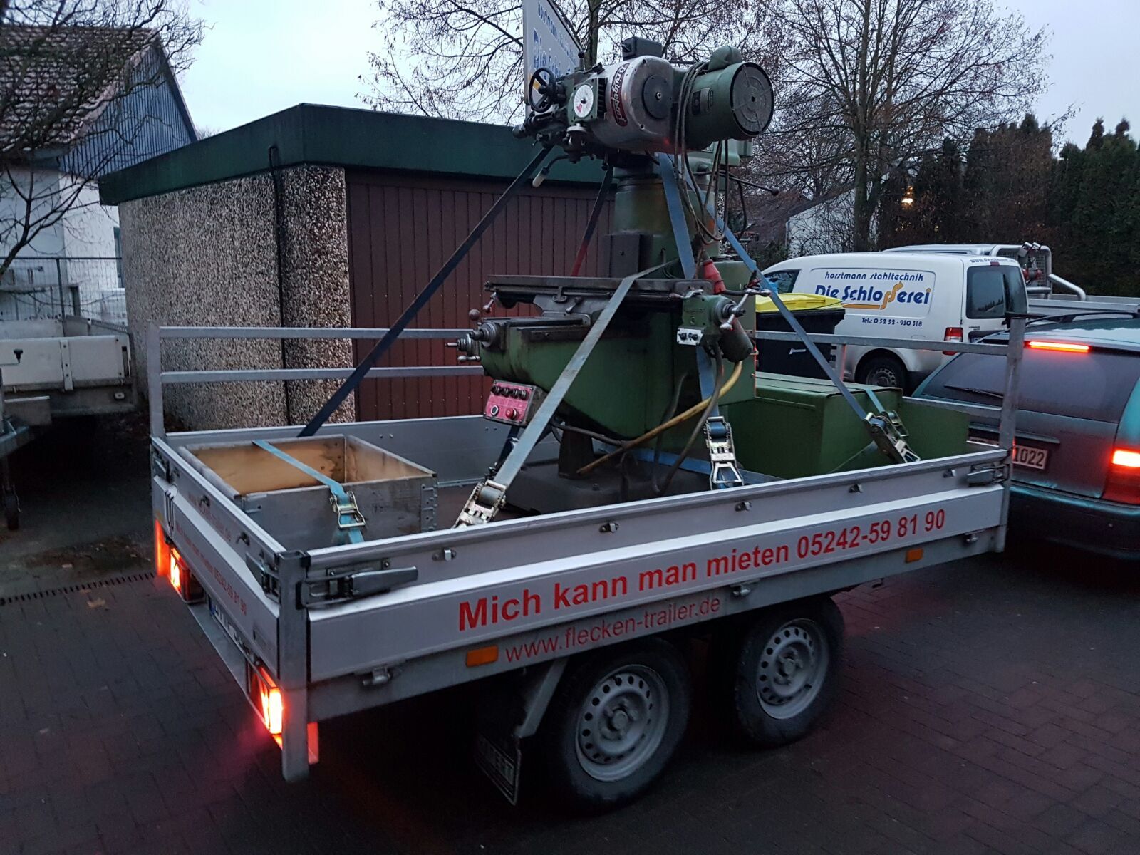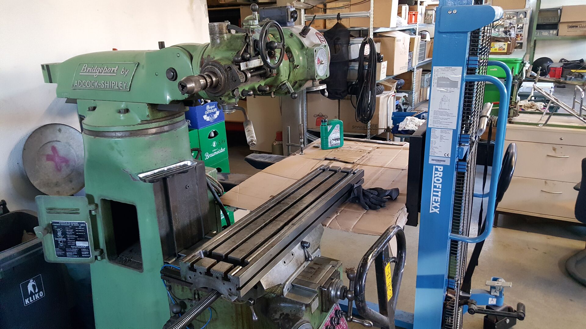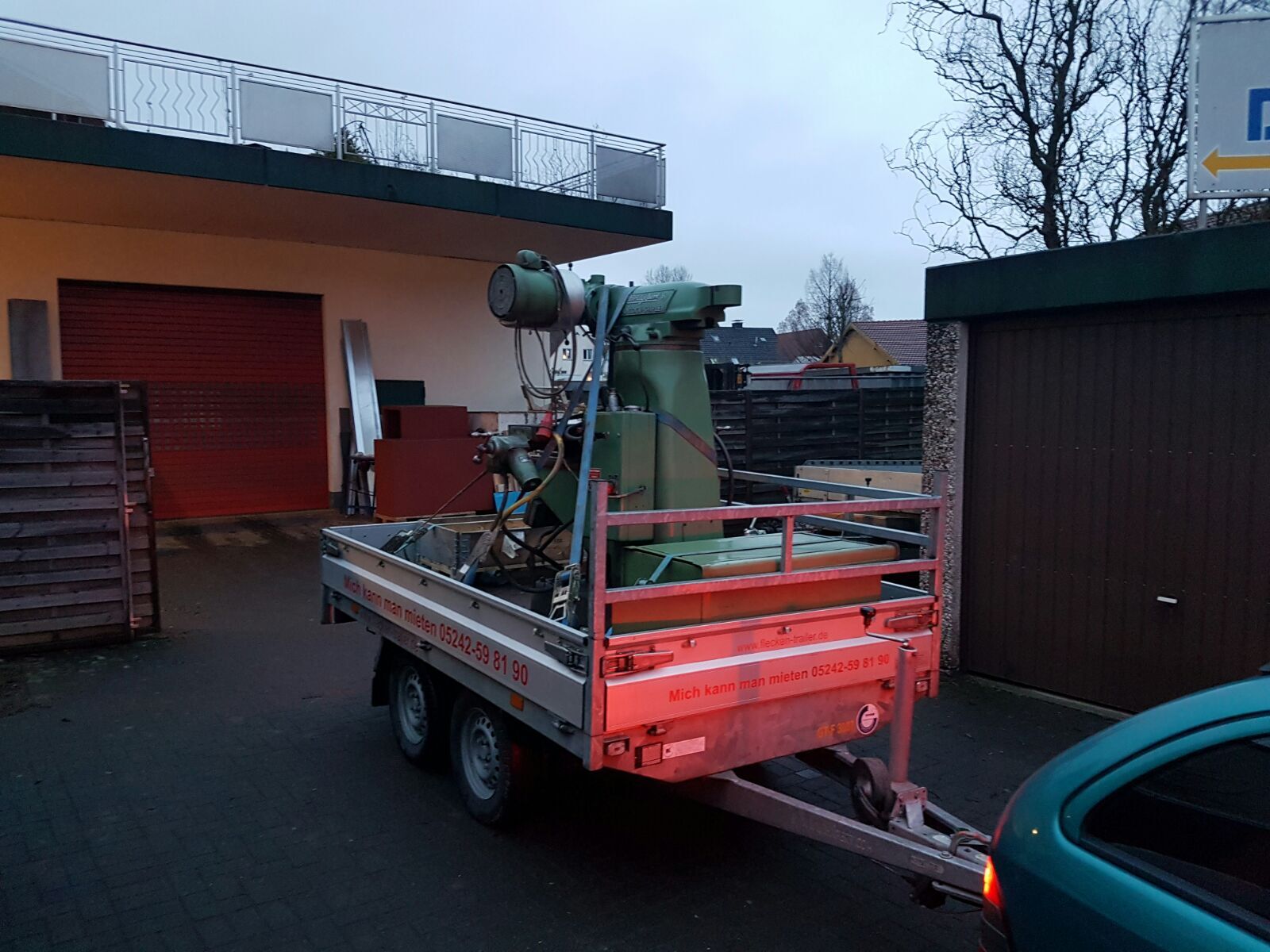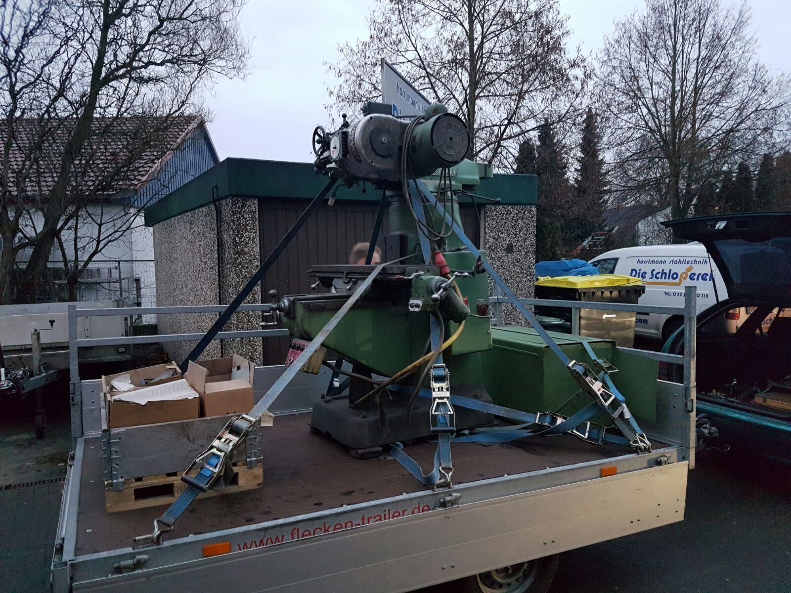 angekündigt habe, hab ich mir eine Fräse gekauft. Es handelt sich um eine gebrauchte Bridgeport Fräse. Ich hatte mir das gute Stück in Bad Lippspringe angeschaut und wir konnten und preislich direkt einigen. Eine Lieferung wurde mir auch angeboten, aber die sollte nochmal 200€ extra kosten. Fande ich zu teuer und hab es kurzerhand selbst gemacht.