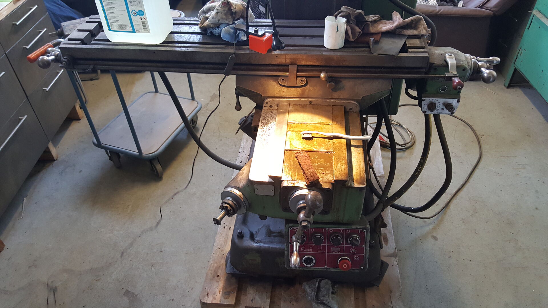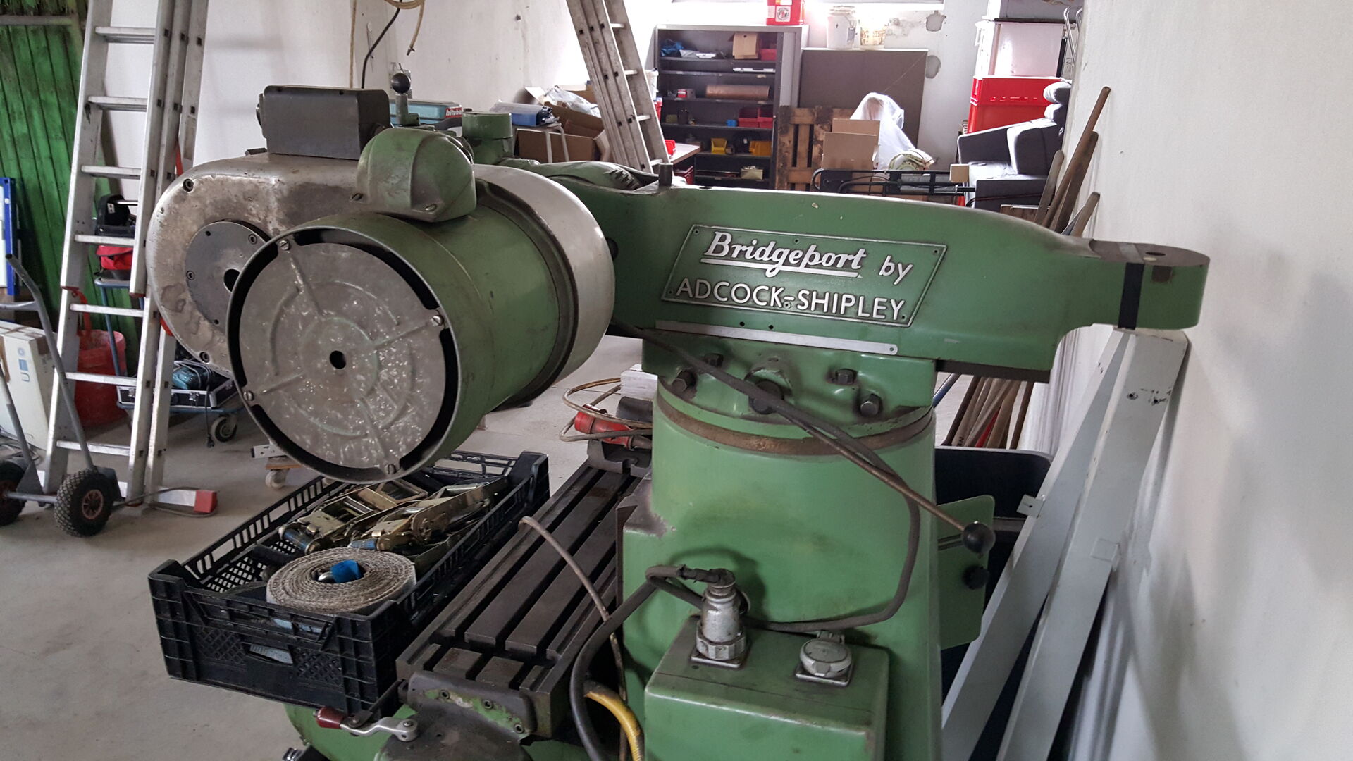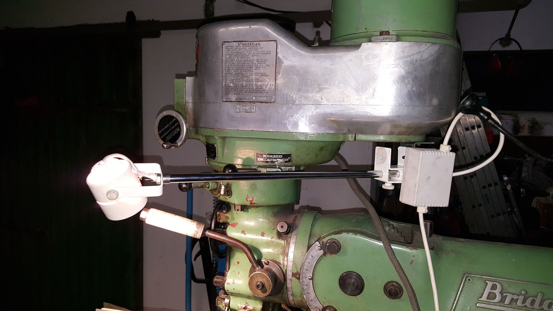 angekündigt habe, hab ich mir eine Fräse gekauft. Es handelt sich um eine gebrauchte Bridgeport Fräse. Ich hatte mir das gute Stück in Bad Lippspringe angeschaut und wir konnten und preislich direkt einigen. Eine Lieferung wurde mir auch angeboten, aber die sollte nochmal 200€ extra kosten. Fande ich zu teuer und hab es kurzerhand selbst gemacht.
