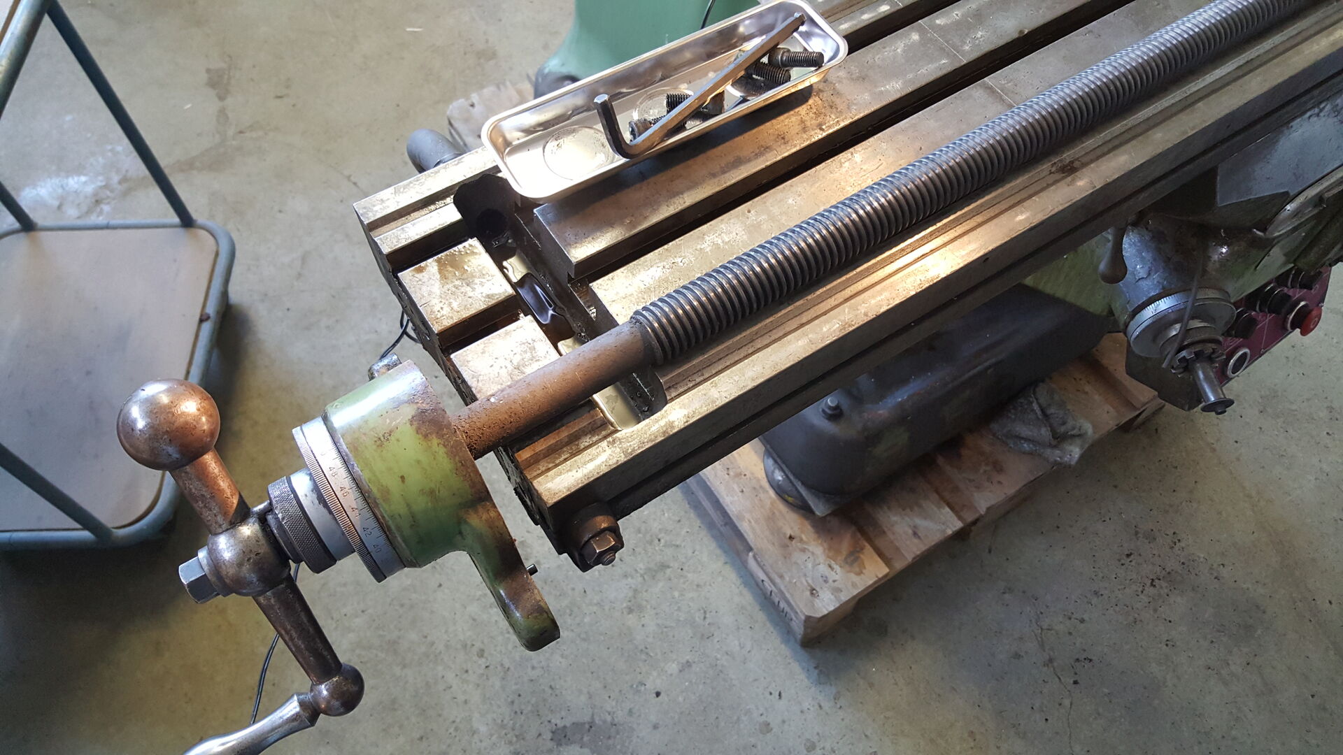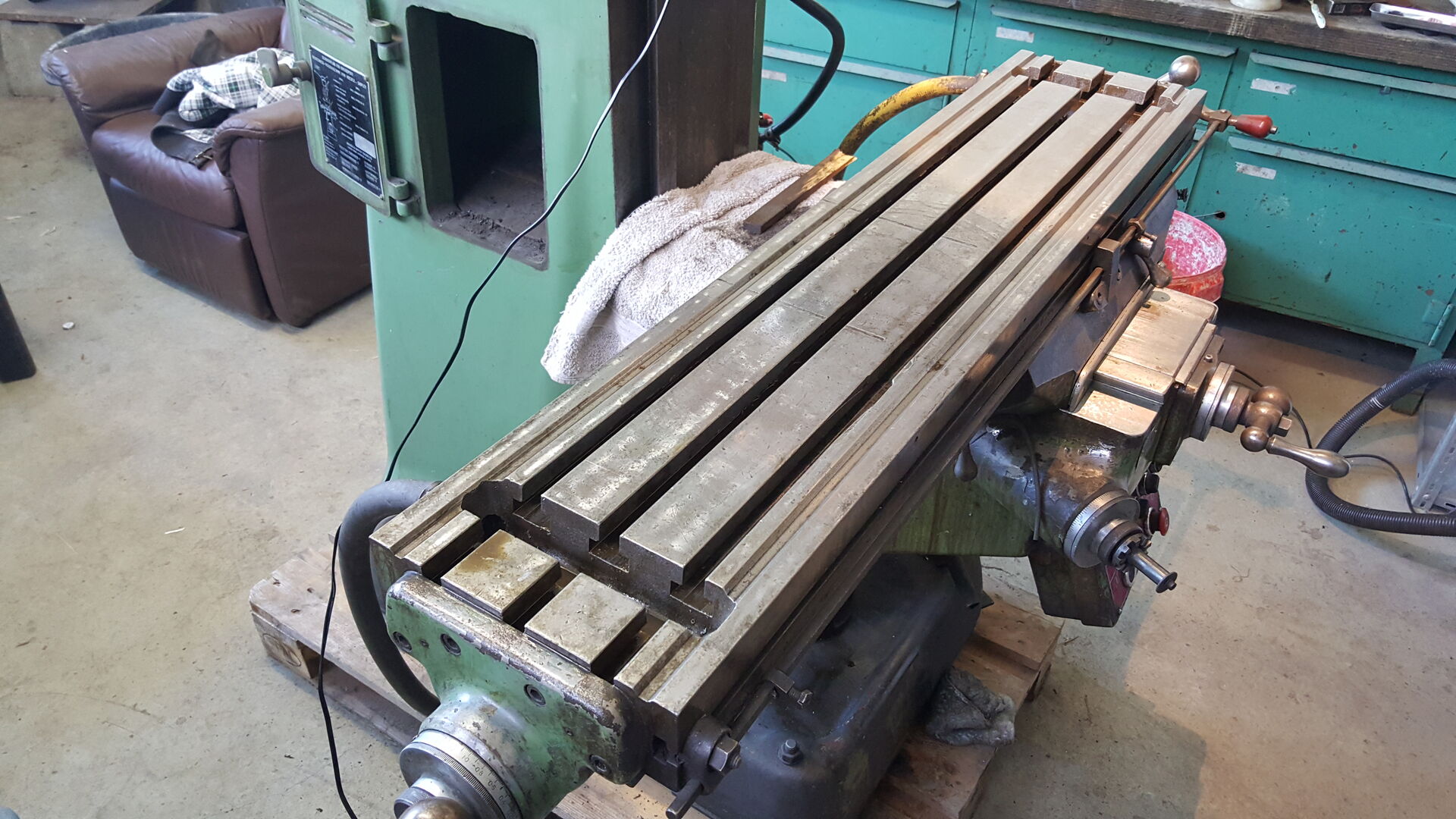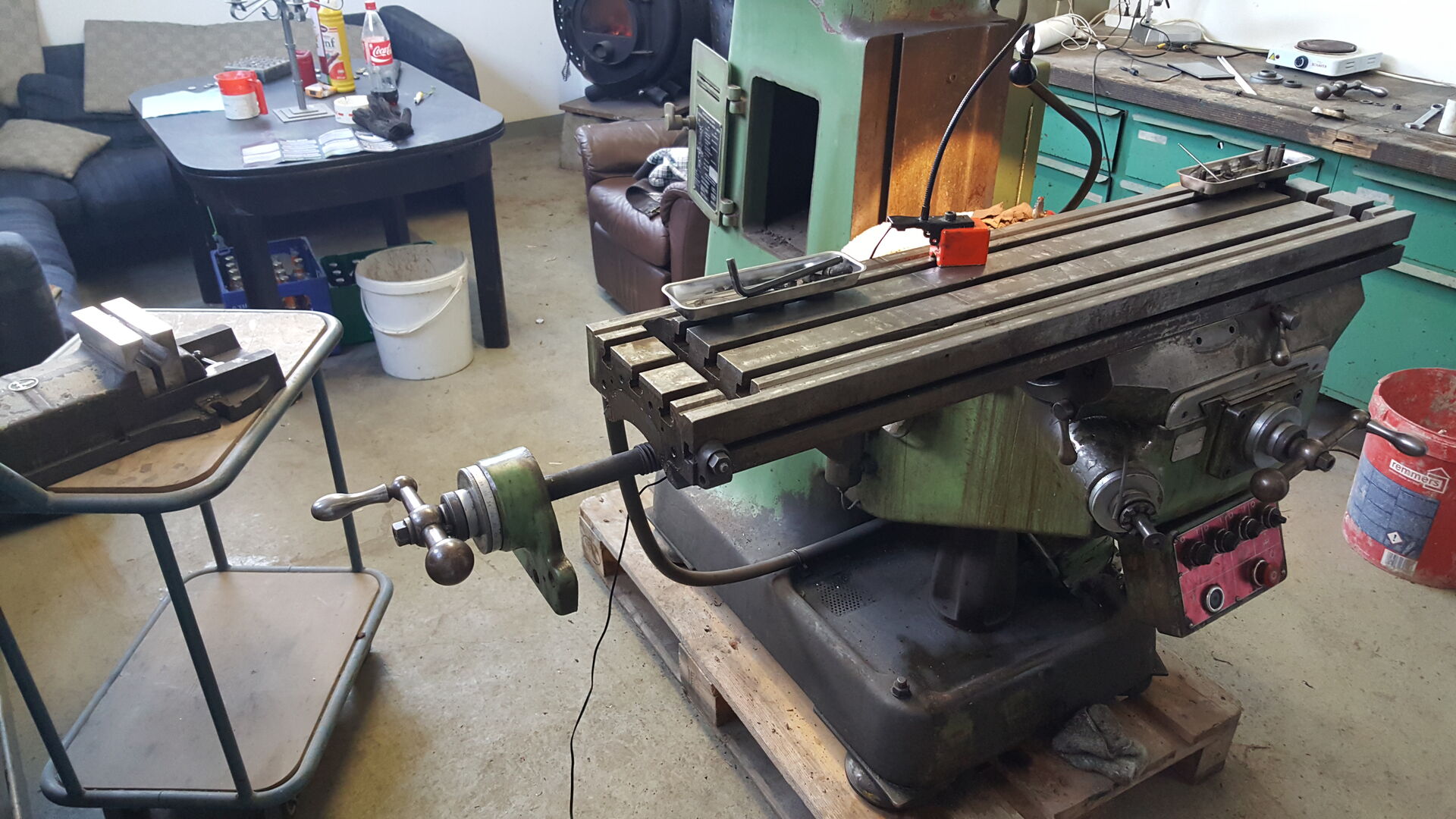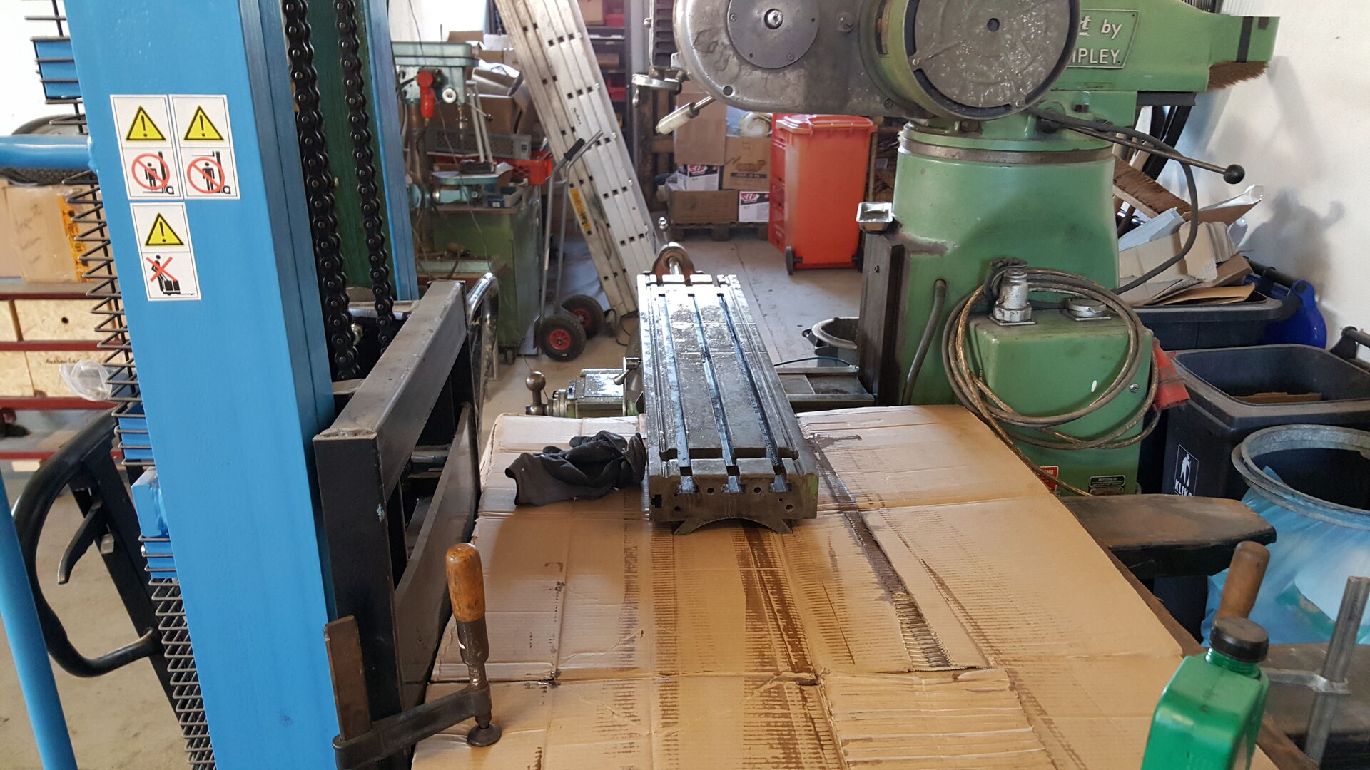 angekündigt habe, hab ich mir eine Fräse gekauft. Es handelt sich um eine gebrauchte Bridgeport Fräse. Ich hatte mir das gute Stück in Bad Lippspringe angeschaut und wir konnten und preislich direkt einigen. Eine Lieferung wurde mir auch angeboten, aber die sollte nochmal 200€ extra kosten. Fande ich zu teuer und hab es kurzerhand selbst gemacht.