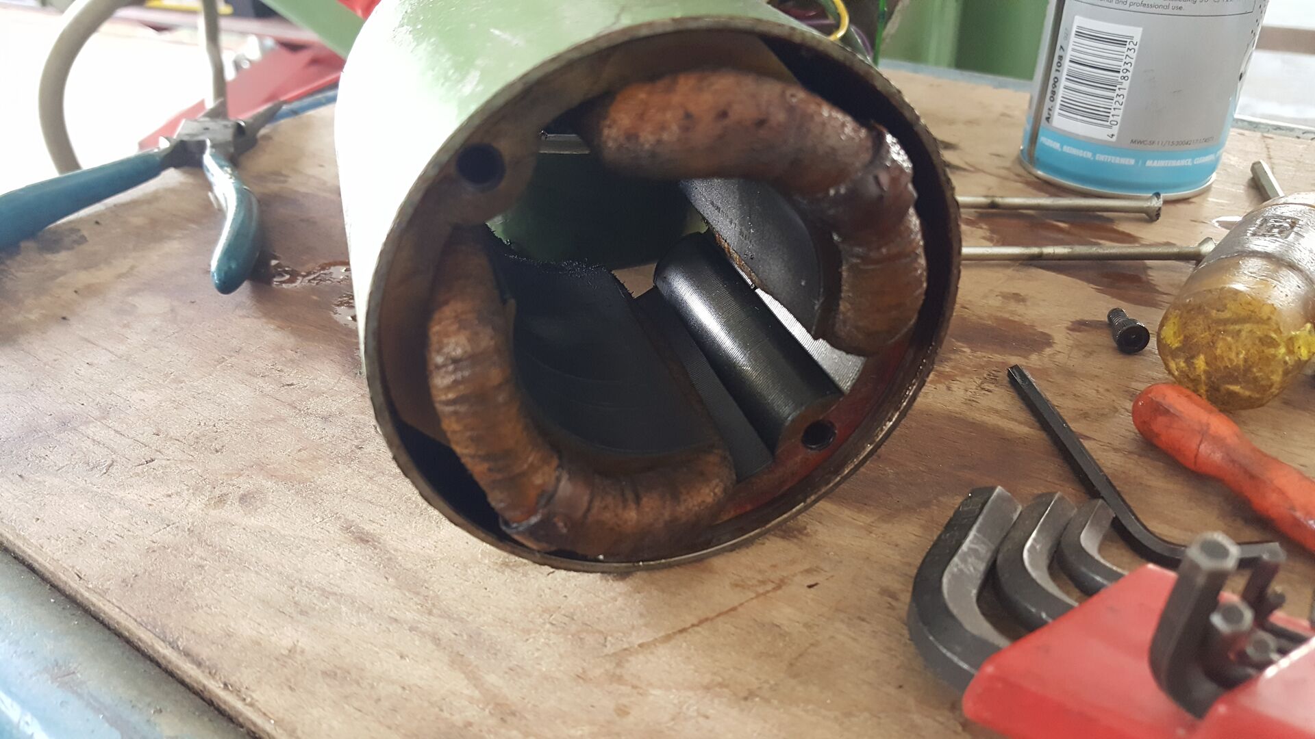 Heute soll es daran gehen, eine Bestandsaufnahme zu machen. Wartung und Pflege hat diese Maschine selten gesehen. Ich werde mir vorerst ein Bild