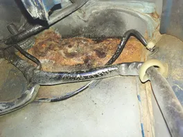 Jetzt der Schock beim Ausbau des Tanks konnte ich sehen wie ein großer Rostfleck bei der Stossdämpfer Aufnahme vorhanden ist, ist die Stelle überhaupt zu reparieren?