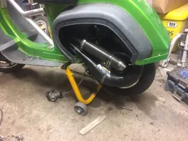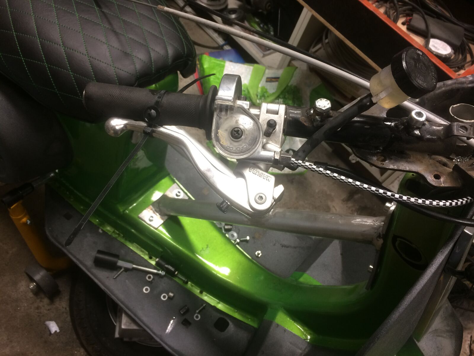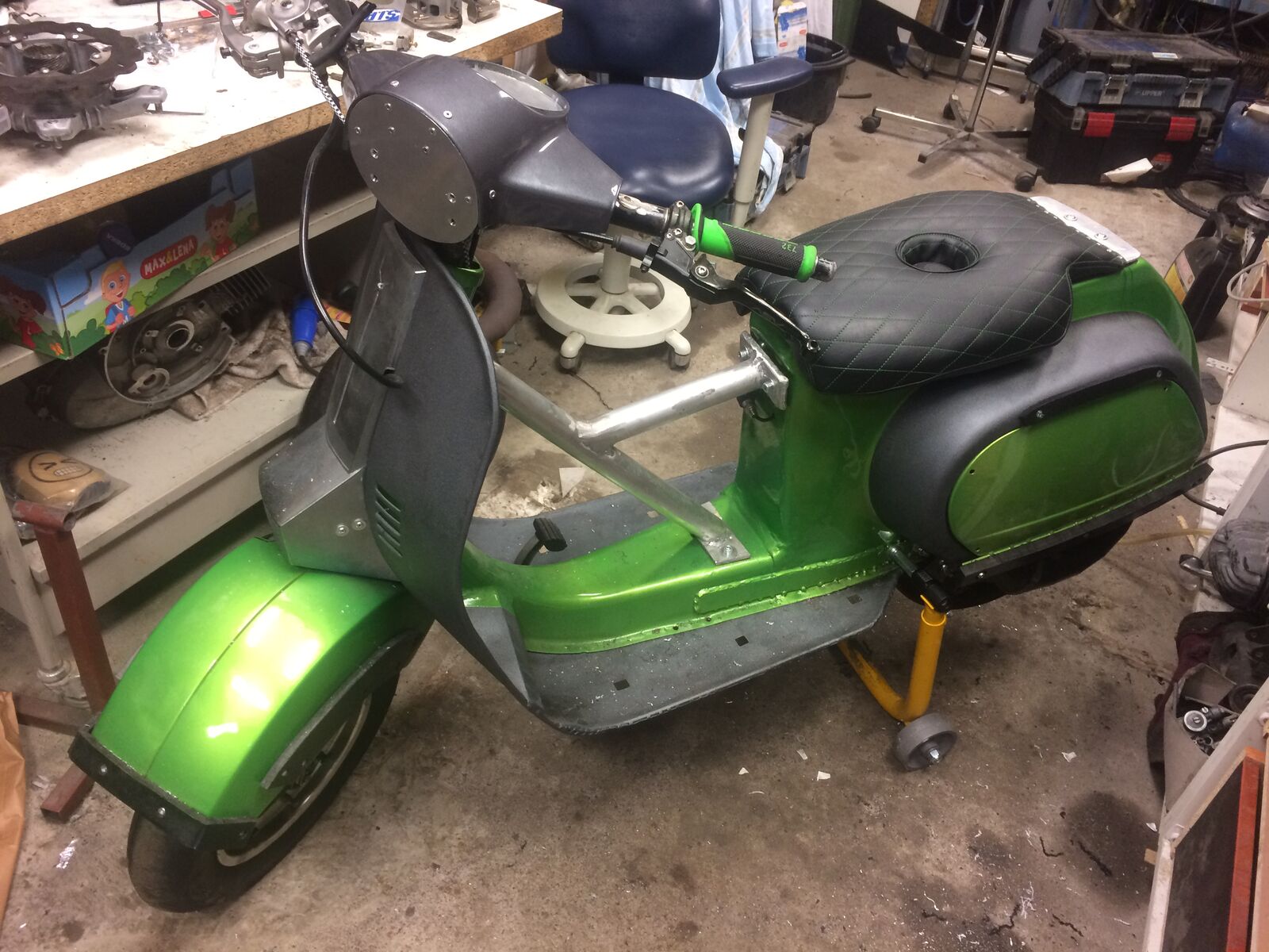 der Roller ist fast fertig. Es fehlen noch die Aufkleber, die kommen kommende Woche irgendwann, wenn alles gut geht. Dann fehlt noch der neue Vergaserraumboden, der Kabelbaum (kommt n stark vereinfachter rein) und die beiden killschalter (abreißkill und taster)