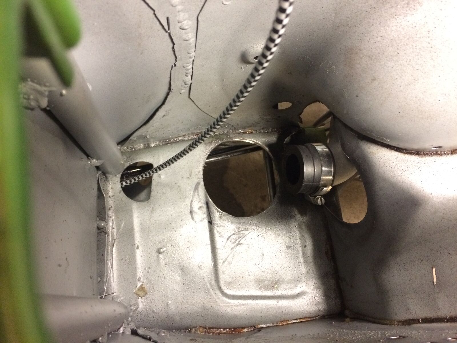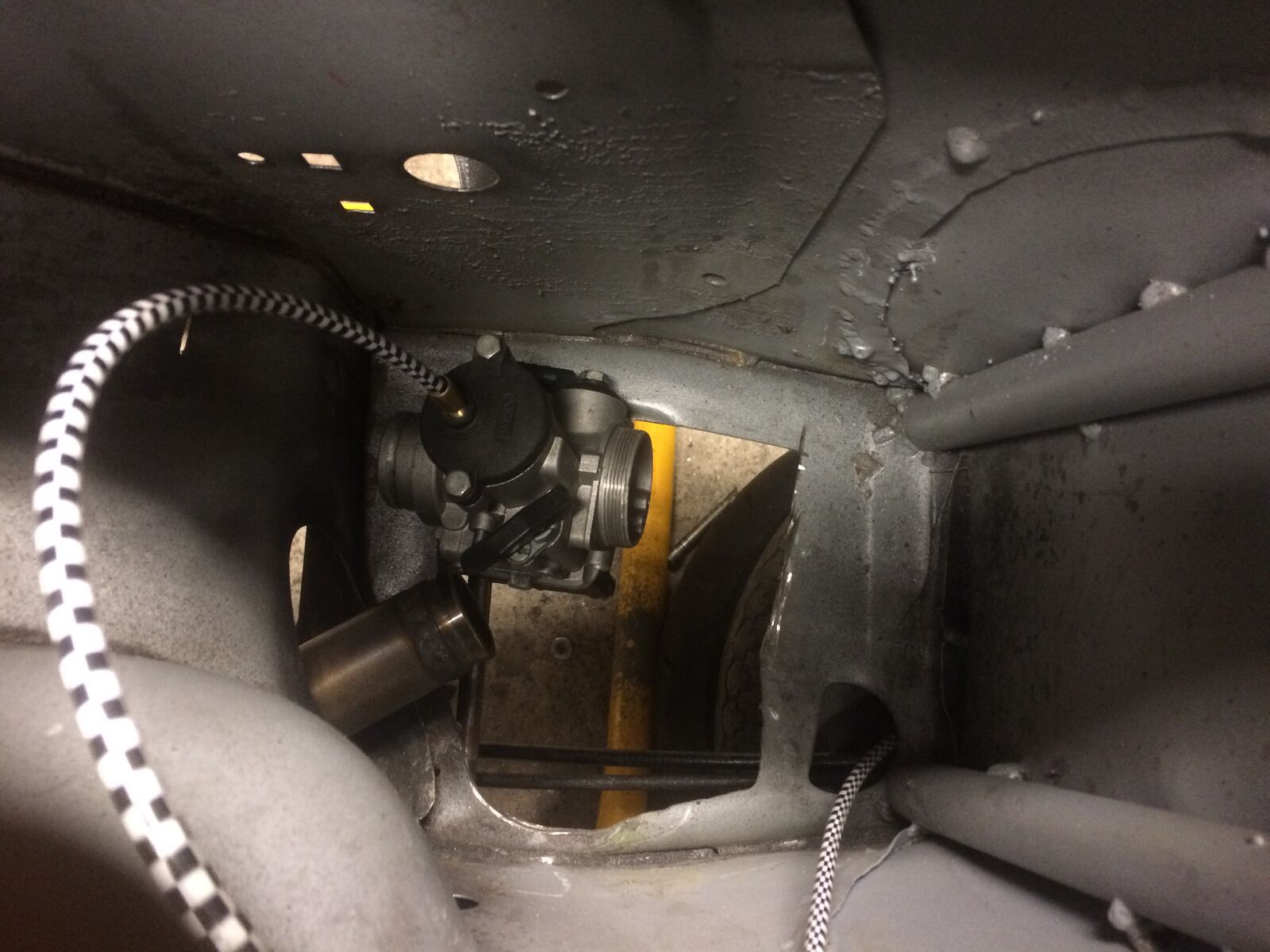 die köttelgrube ist, damit man zugang zum tank hat, ohne dass die Sitzbank abgebaut werden muss. Der Tankdeckel wird mittels eines alten Malossi 210er Kolbens entriegelt und entnommen, mit einem Tuffjug getankt, und dann wieder verriegelt.