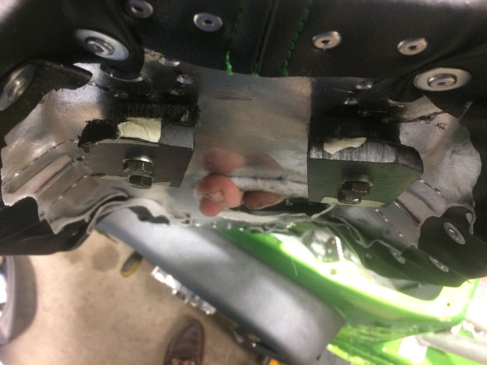 Diese ultraflachen Sitzbänke haben das Problem, dass sie kein Scharnier haben. Entsprechend werden sie meist verschraubt, oder hier verschraubt und gesteckt. Jedes mal abschrauben ist dann doch etwas nervig. Durch den Sitz durchtanken geht dann doch schneller.