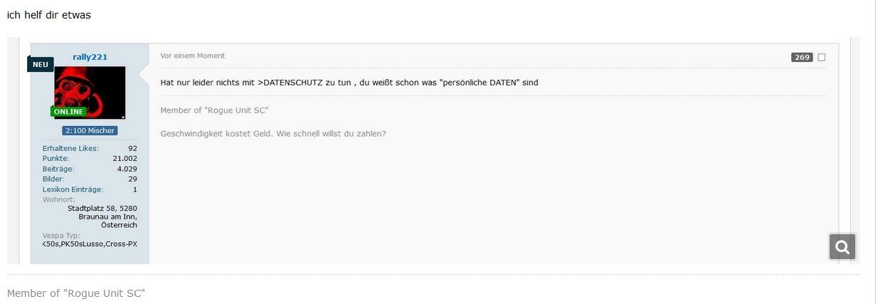 Zitat von 1965Rally ist Moderator und erklärt allen Ernstes, wenn er die Privatsphäre-Einstellungen umgehe, habe das nichts mit Datenschutz zu tun.