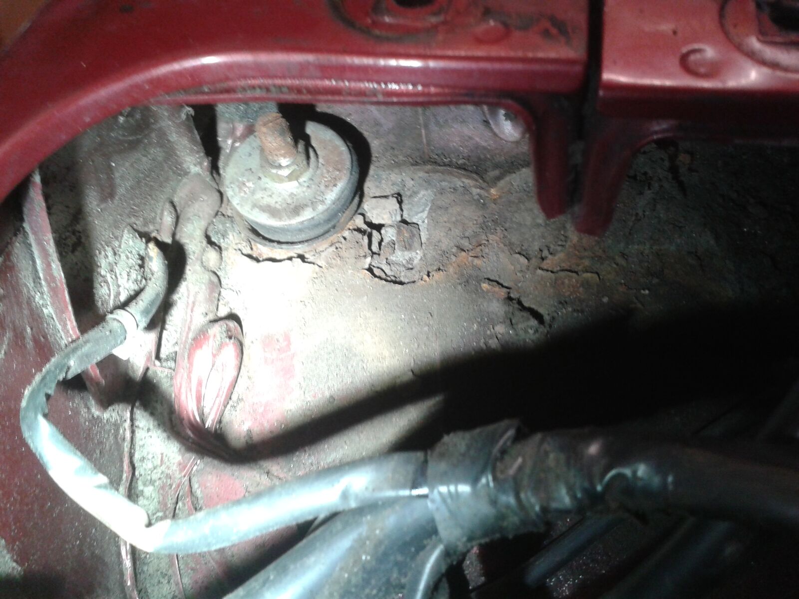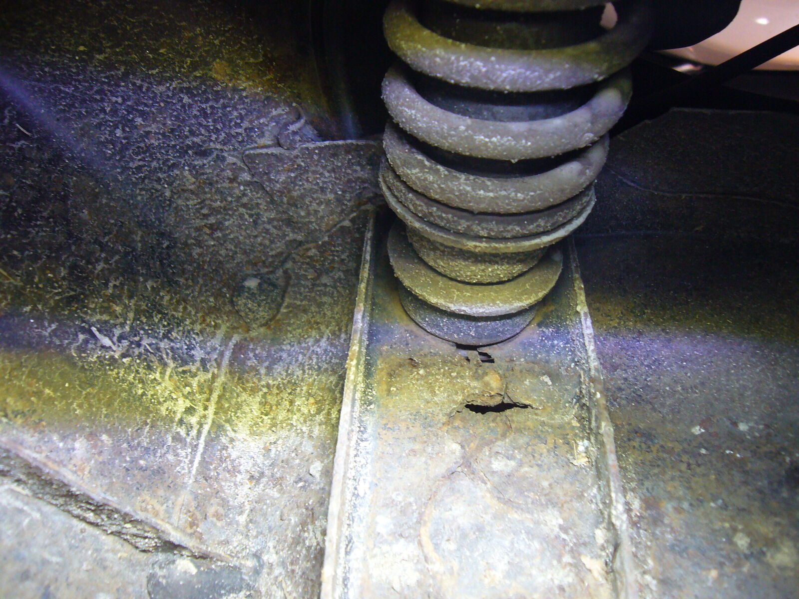 Hier die (Handy)Bilder von meiner weggerotteten Dämpferaufnahme.