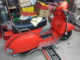 Dabei rausgekommen is ne PX 80 Dosengelackt mit farbe aussem GraffitiShop. Motorisiert ist die gute mit nem gefrästen 139er Malossi , Si 24, geflexter orig. KW, gefrästem Drehschieber und angepassten Überströmern..... Auspuff is grad ne Polini Tröte drauf, die fliegt aber Runter.