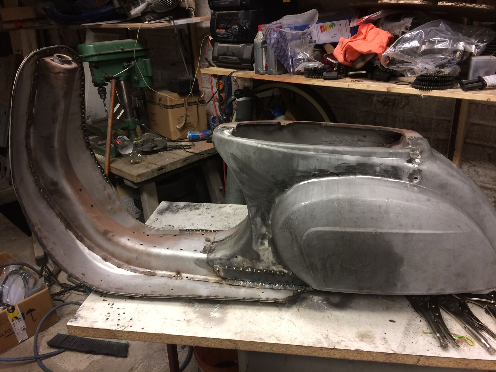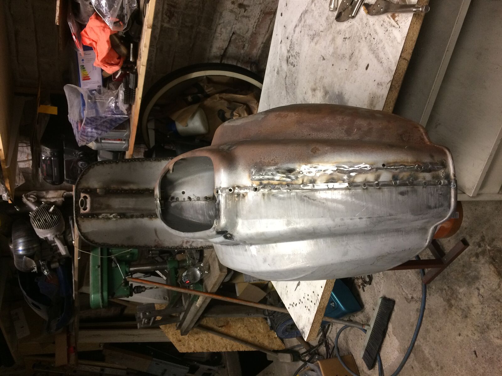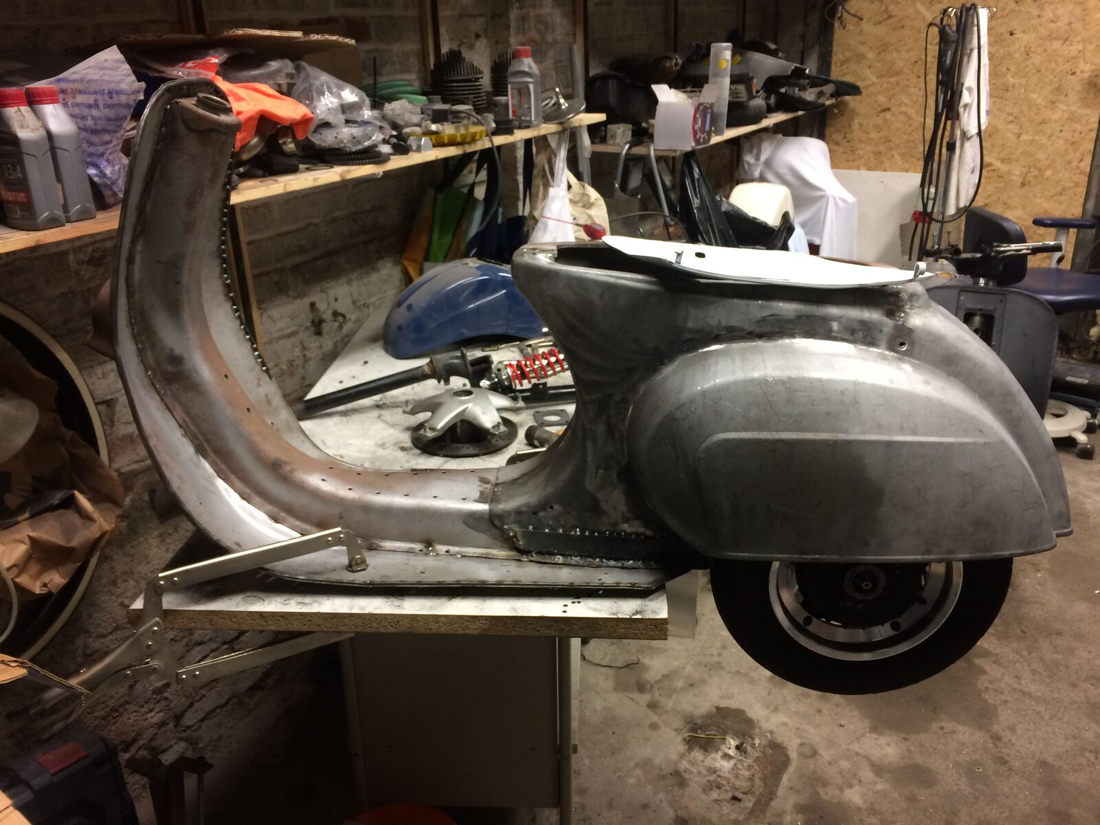 Ich habe mal in der Werkstatt ein paar Kleinigkeiten gefunden. Das werd ich mal zu einem Roller zusammenbauen. Wie konnte es nur passieren, dass mir das Schweißgerät wieder ausgerutscht ist...