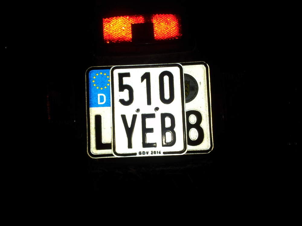 Schwanke zwischen dem kleine LKR-Kennzeichen mit 130 mm * 180 mm und dem größeren, aber ebenso schmalen Motorrad-Kennzeichen 200 mm * 180 mm.