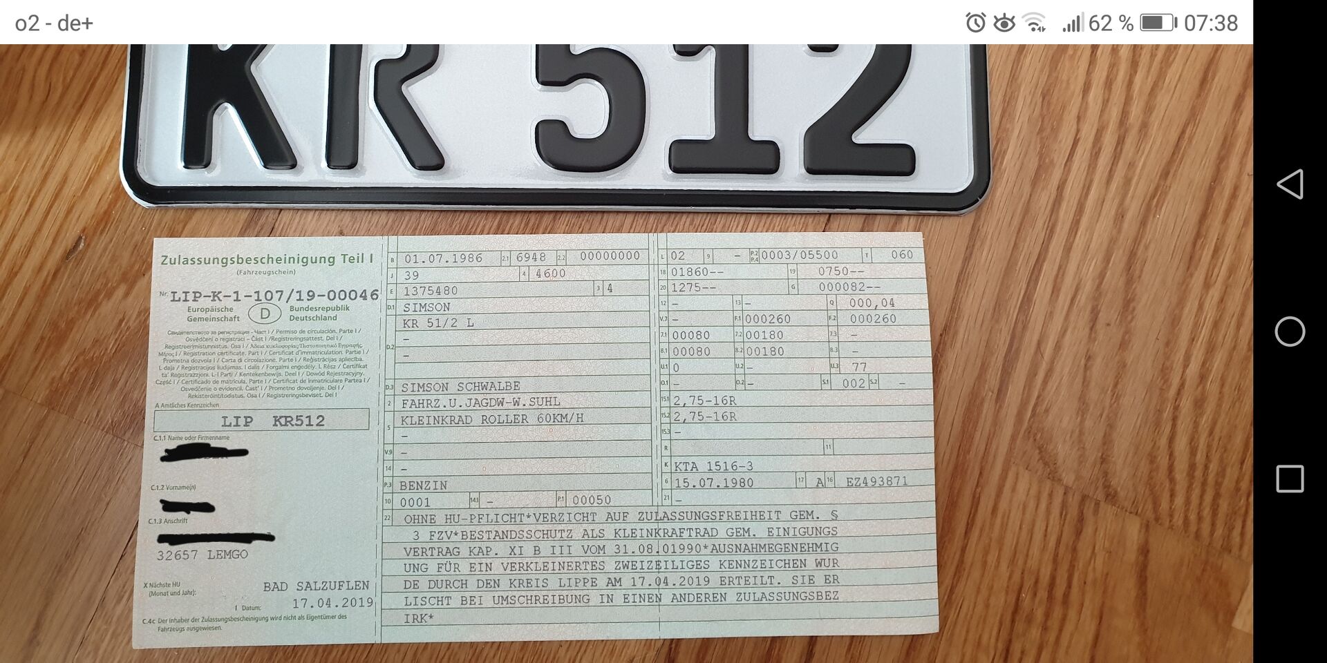 Gestern hatte ich schon den ersten Anruf der Zulassungsstelle, konnte heut dort erst zurückrufen.