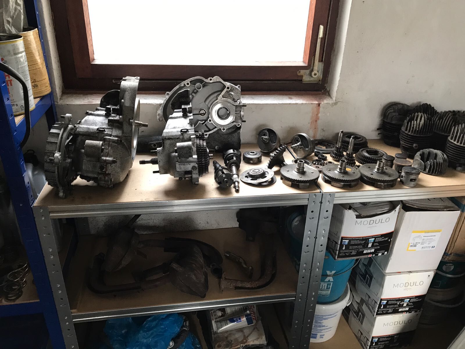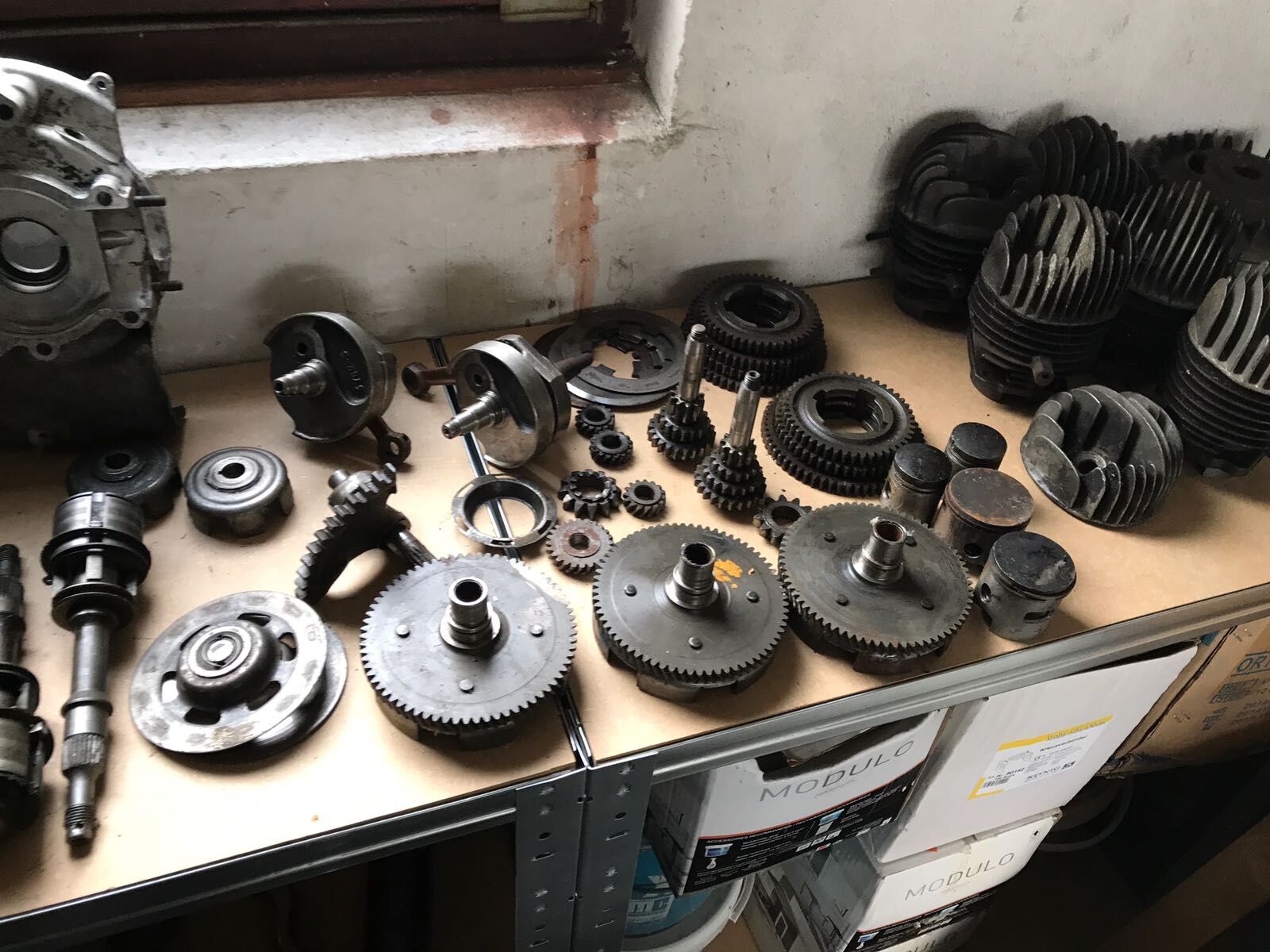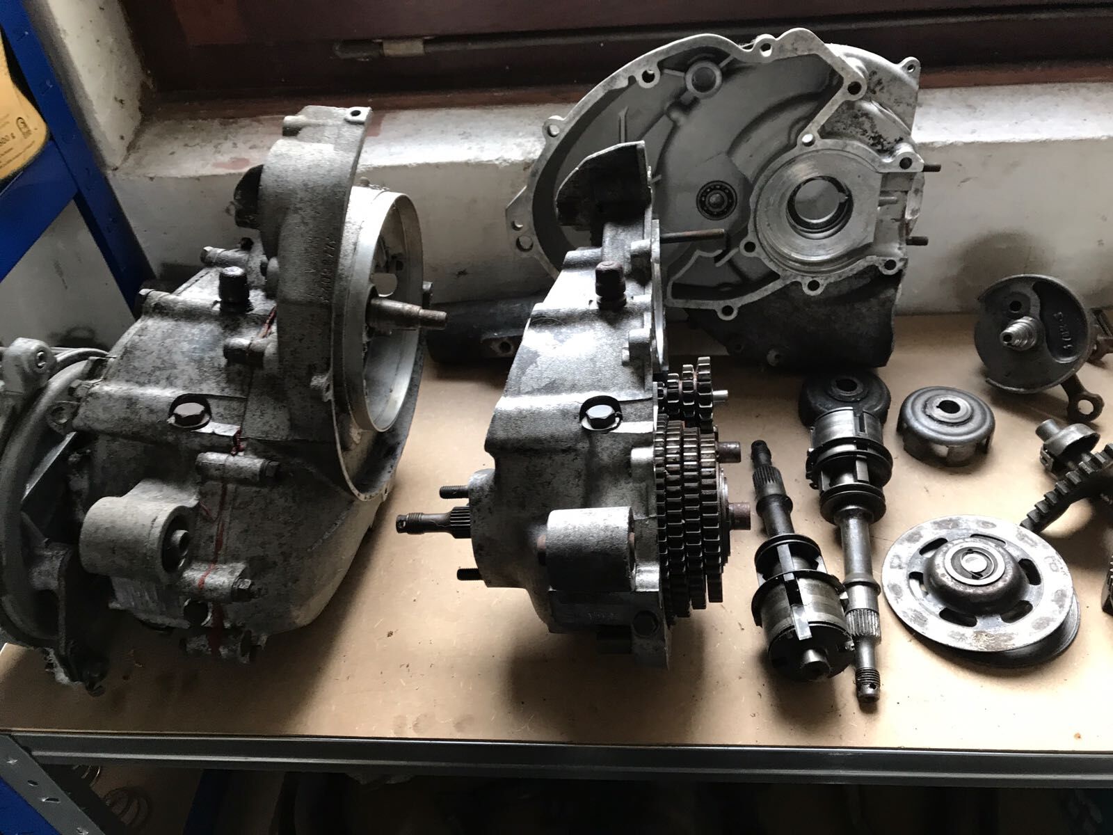 Wenn ich mich nicht irre, hast Du da ja schon mindestens zwei größere Kolben liegen, wenn da dann auch die passenden Zylinder bei sind, hast Du schon mal was. Auch die Primär, die da liegen sind unterschiedlich. Könnte auch was längeres dabei sein.