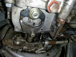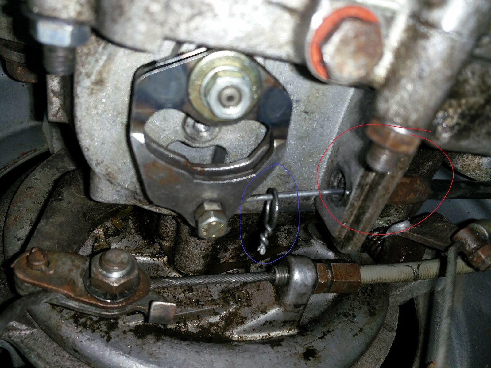 Am Zug hängt noch ein Draht (blau), der wohl dazu diente den äußeren Mantel fest zu halten (wohl vom Vorgänger), ähnlich eines Sicherungsringes. Wenn ich nun schalte fliegt der Zug mit Mantel immer aus der Halterung am Motor raus (rot).