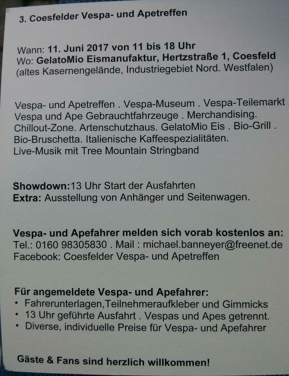 Auch in diesem Jahr findet das jährliche Vespa Treffen in Coesfeld statt.