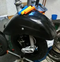 So, Sprint Tachowelle in die Gabel reingefrickelt. Test, Tacho läuft!