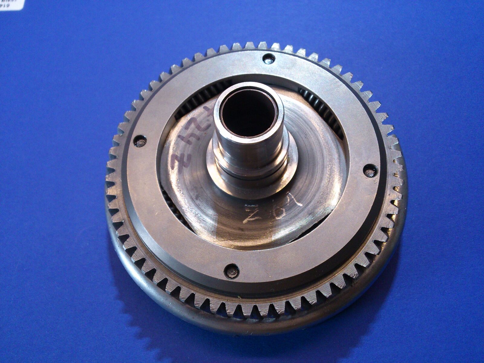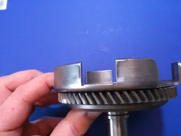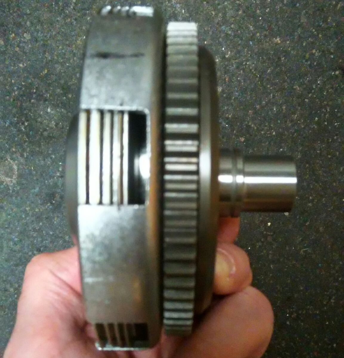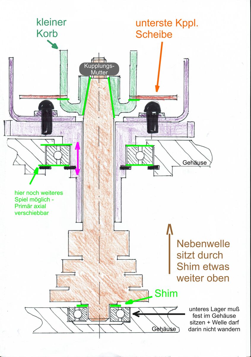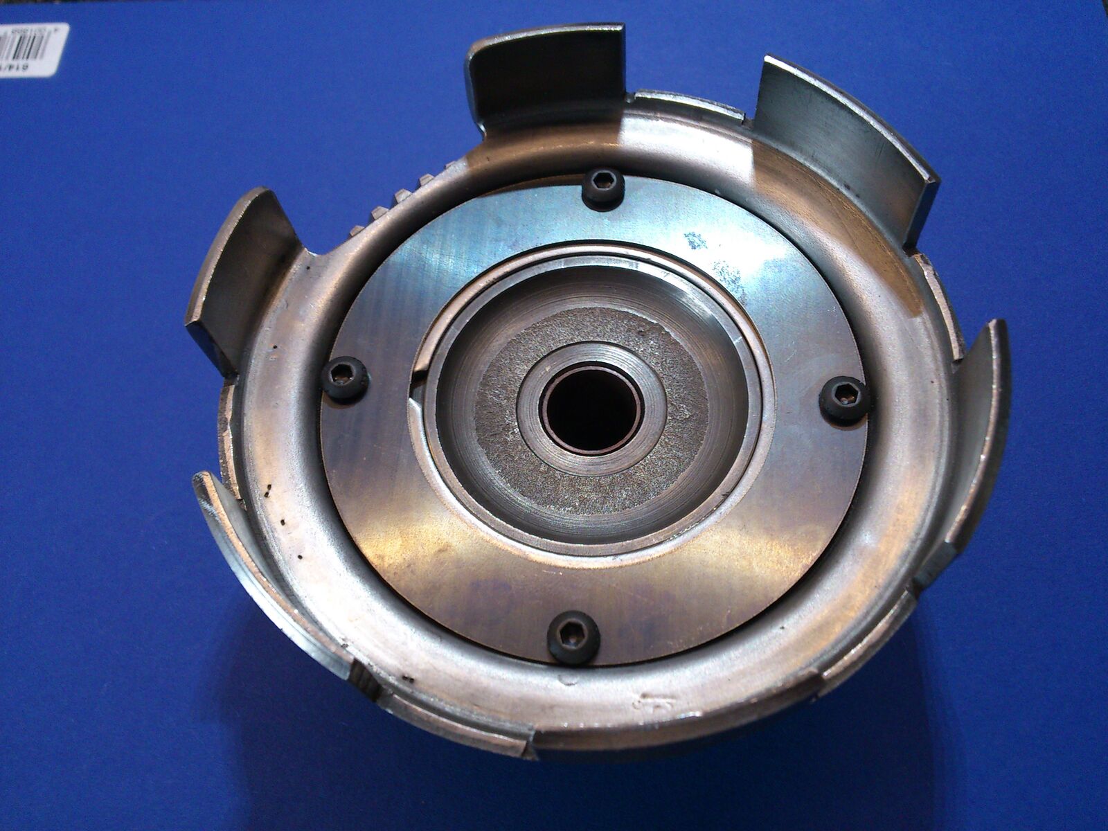 An den Flanken des Kupplungskorbes sieht man die dunklen Stellen. Es ist ein Originalkorb, bei dem die Festigkeit mittels Wärmebehandlung erhöht wurde, daher die dunklen Stellen. Billigkörbe haben das nicht...schaut euch Reprokörbe mal an...unbehandelt und daher total weich