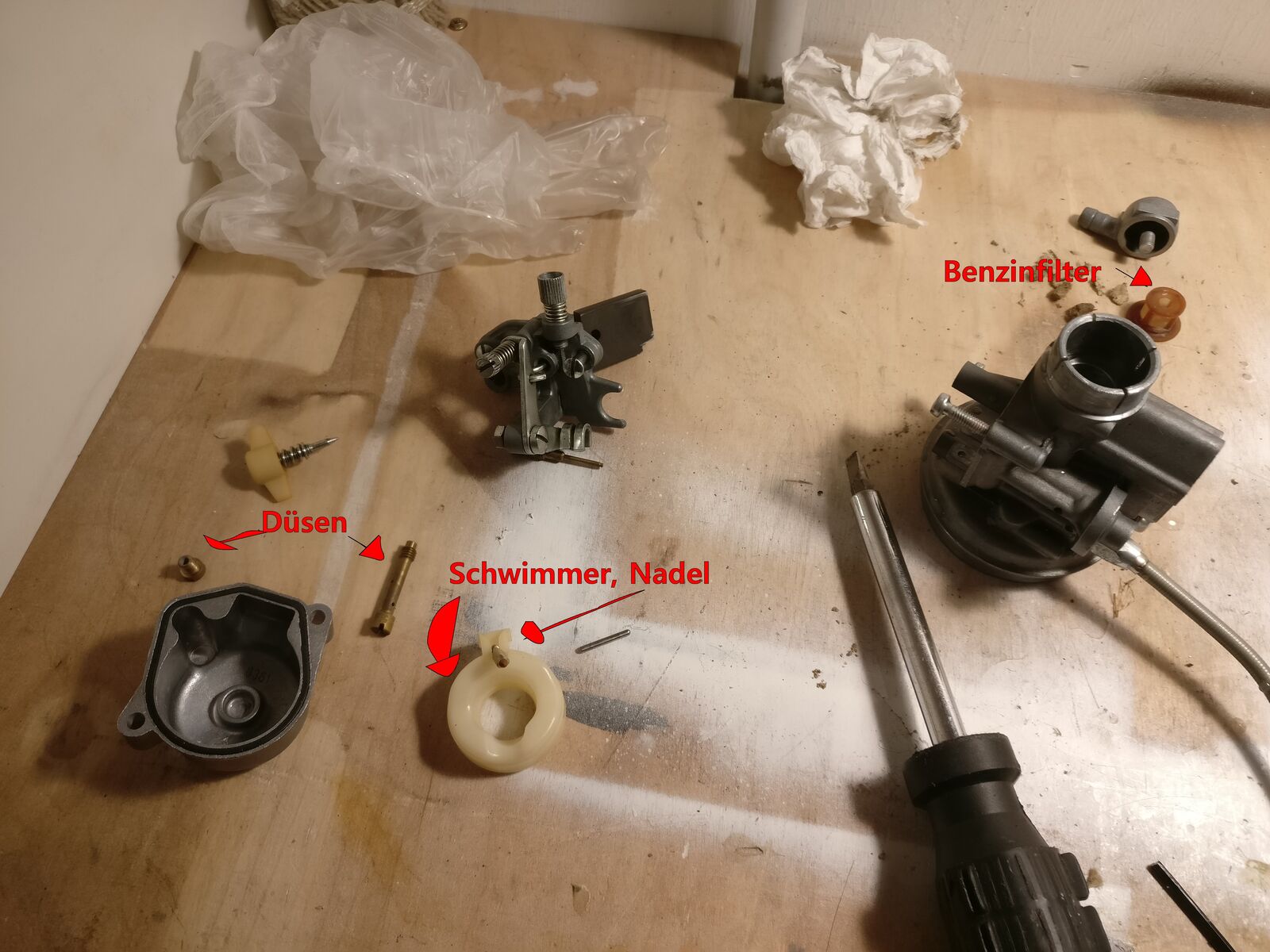 - Vergaser auseinander geschraubt, alles durchgepustet (war nichts verschmutzt oder dreckig)