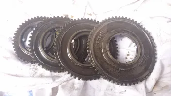 Hab die zahnräder ausgebaut und auf dem obersten sieht man an 2 stellen leichte abreibungen (siehe fotos) ist da handlungsbedarf gefordert oder kann ich die so weiter verwenden? noch was stimmt die anordnung der zahnräder so wie aufm foto, ich hab da eben im schema nichts recht erkennen können.