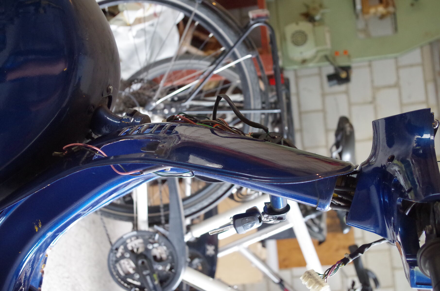 der roller ist im zusammengebauten zustand lackiert worden. sehr gut. yeay.