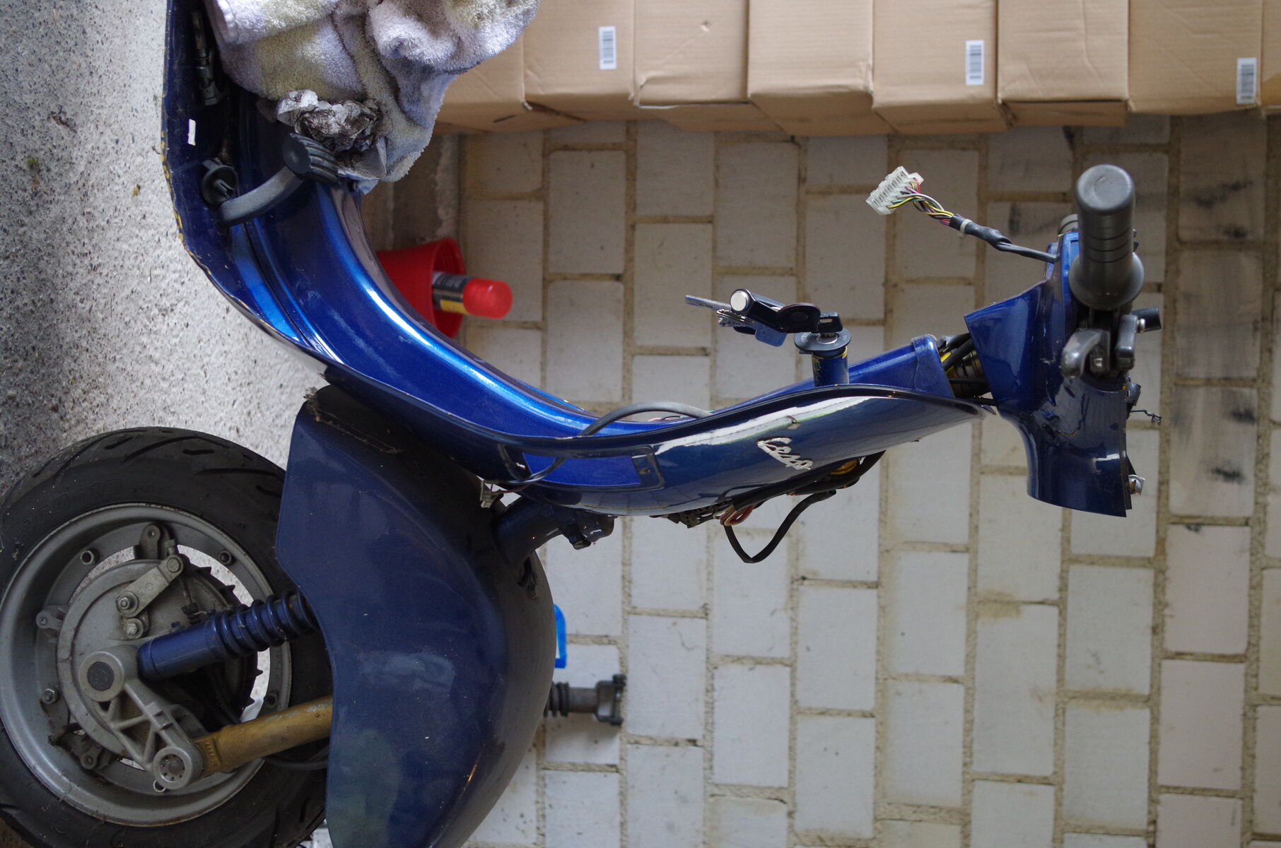 • der roller ist im zusammengebauten zustand lackiert worden. sehr gut. yeay.