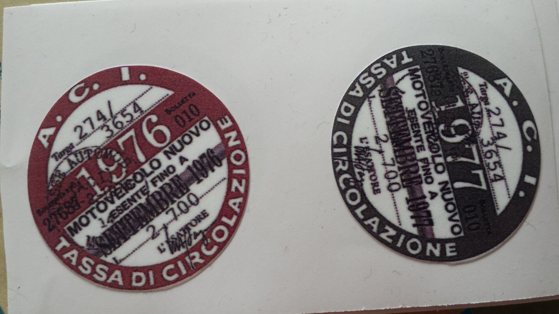 ...Farben und Lire Betrag hing von Fahrzeugkategorie und Steuerklasse ab. So viel mir bekannt ist gab es die 73er Ausführung in grün, gelb und orange. Ich glaube gelb war für Autos und die Grünen für Kleinkrafträder. Die Orangen