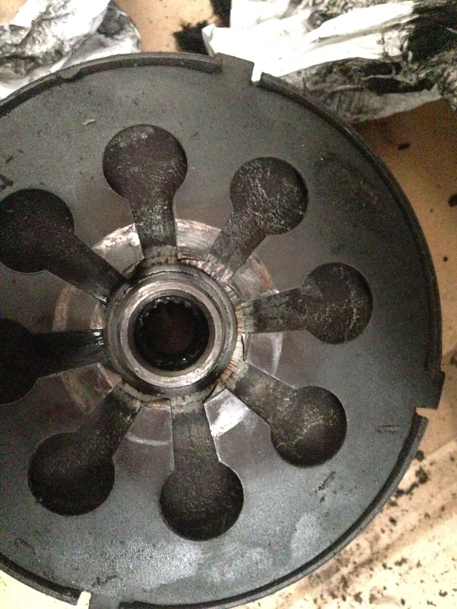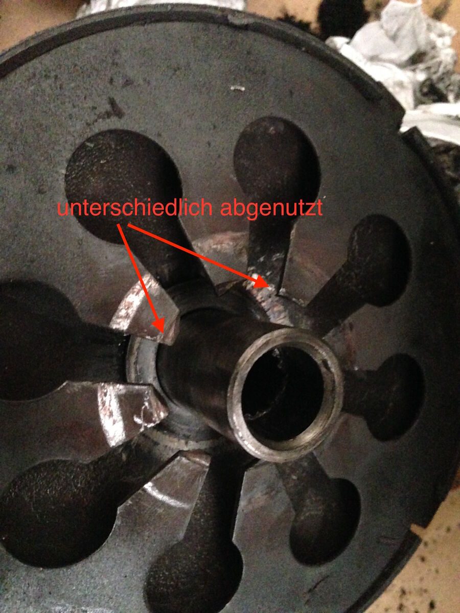 Habe dann im weitern Verlauf die oberer Scheibe mal abmontiert und festgestellt, dass darunter einiges an Metall abgerieben ist....ich weiß zwar ehrlich gesagt nicht genau wie die Bezeichnung der Teile ist, jedoch sollte das so glaube ich nicht aussehen.