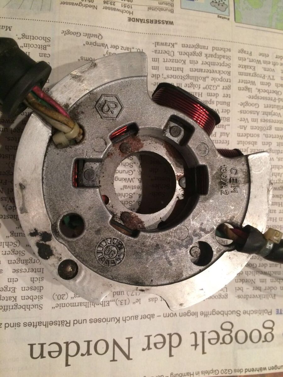 Also, Vespe aus dem Schuppen eines Kumpel befreit, auseinander, neuen Lack und wieder zusammen damit. Vor Demontage mal angetestet, ob Sie läuft, dem war so un damit hab ich den Motor + Zündung und Vergaser erstmal so gelassen, wie gekauft, nach dem Motto, never change a running system. Und da das Ding "nur" 8000 auf der Uhr hatte - was soll da sein...