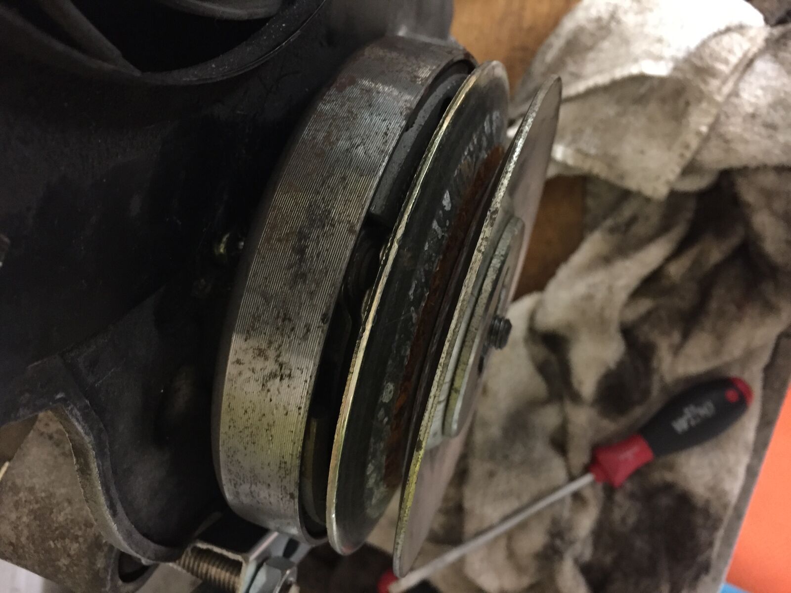 Nochmal danke! - Die vorderen sind dann die kleine und die erste von den Scheiben, zwischen denen der Keilriemen läuft?