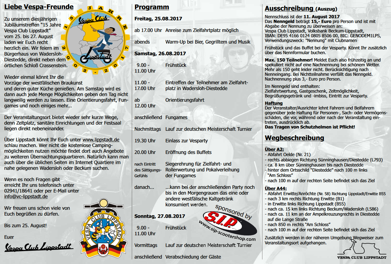15 Jahre Vespa Club Lippstadt 25 bis 27.08.2017