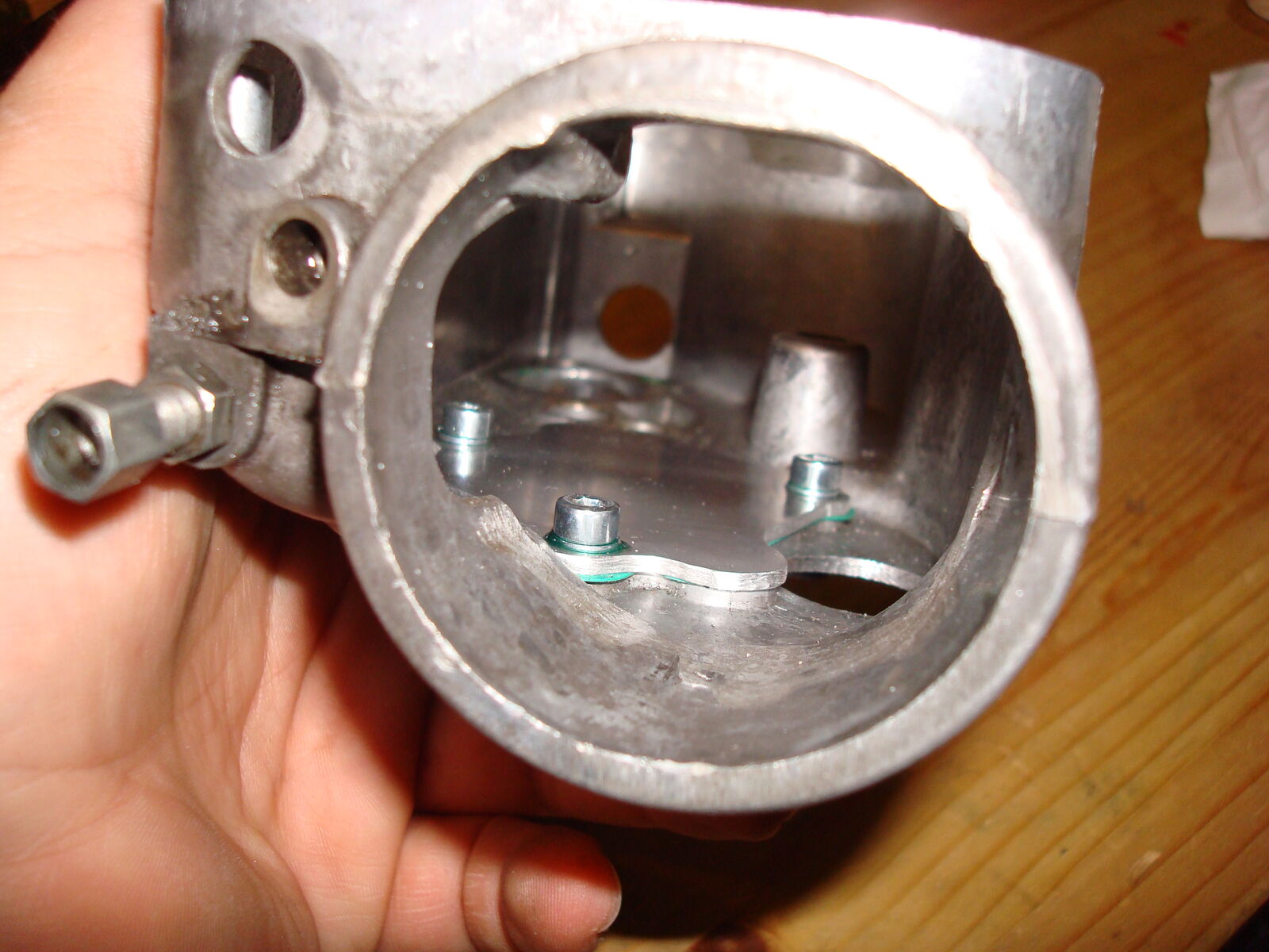 Getrenntschmierung stillgelegt und die Pumpe aus der Vergaserwanne ausgebaut-Deckel aus Alu gemacht und draufgeschraubt-dadurch kann die Luft ungestört strömen