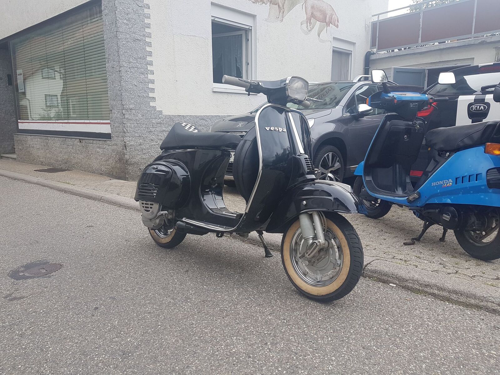 Laut Vorbesitzer ist ein 110ccm Zylinder verbaut. Baujahr ist wie gesagt 1975 und leider wurde die Vespa schon von ihrem Originallack befreit.