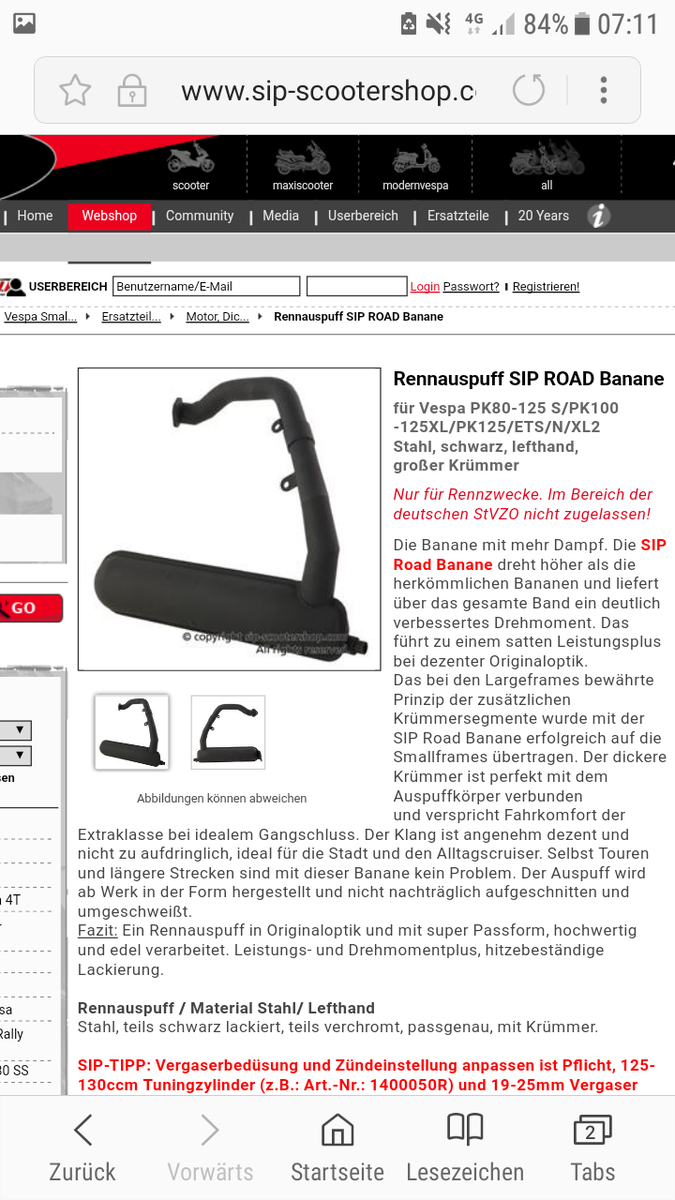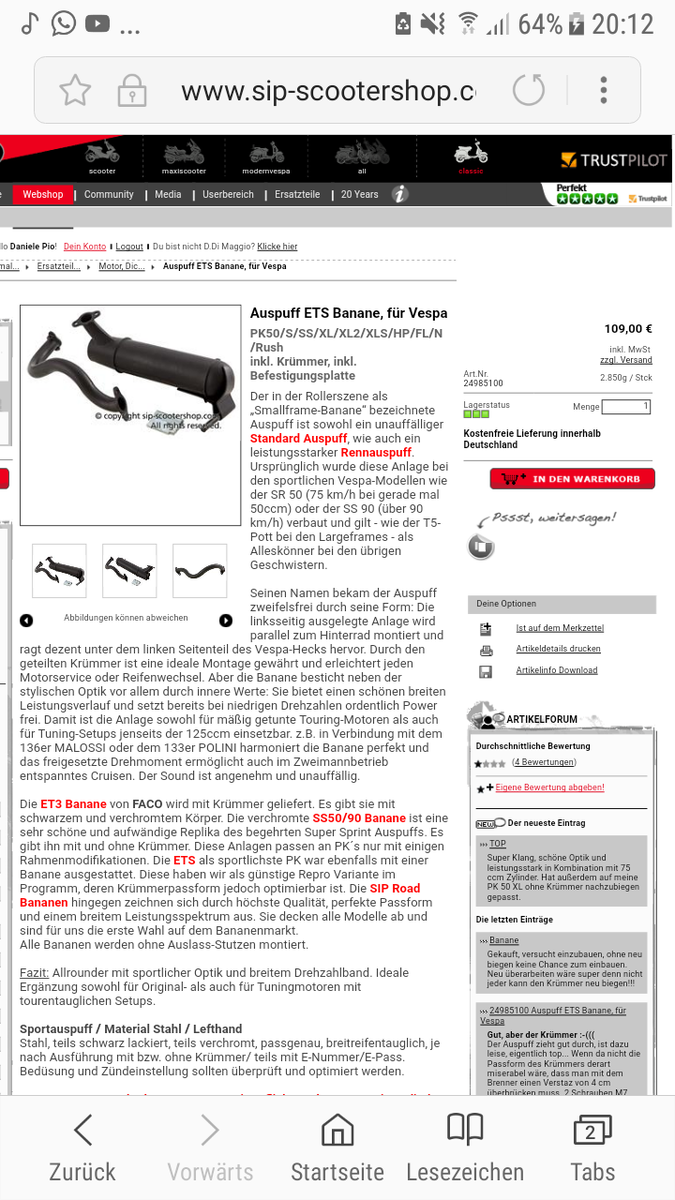Hab mir Bei Sip Den Ets Auspuff Bestellt und den Rennluftfilter von Pollini mein Alter war Kaputt Gewesen