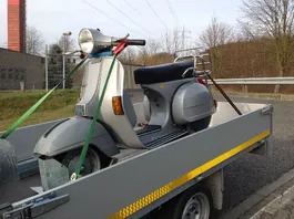Die Vespa so nicht Spannen. Die Rohre am Lenker halten nicht so viel aus.