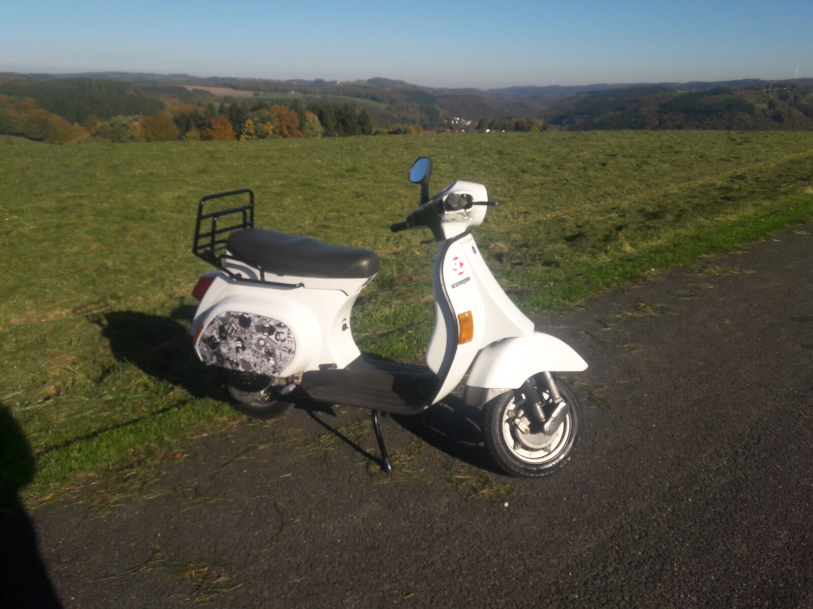Ich hab mir vorgestellt die Vespa in Weiß zulackieren, Felgen und Bremstrommel Schwarz Lackieren und dann sportfeder zu tun und tiefergelegt es sollte Jugendliche Sport Vespa sein was für mein Alter entspricht