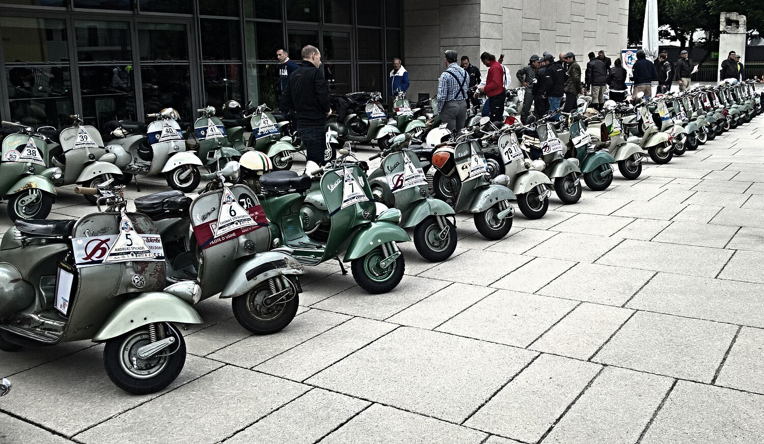 "Treffen und Runs" zeigen das Rollerfahren auch im wahren Leben Gemeinsamkeiten schafft. Außerdem ist es das Motto des Fotowettbewerbs im Oktober. Deshalb zeigen die Bilder jede Menge Vespae. Aber es zählt im Wettbewerb nicht die Quatität sondern die Qualität. D.h. das Bild das für euch das Motto und den Monat am Besten verkörpert soll euere Stimme bekommen. Also vergrößert die Bilder und laßt sie auf euch wirken.