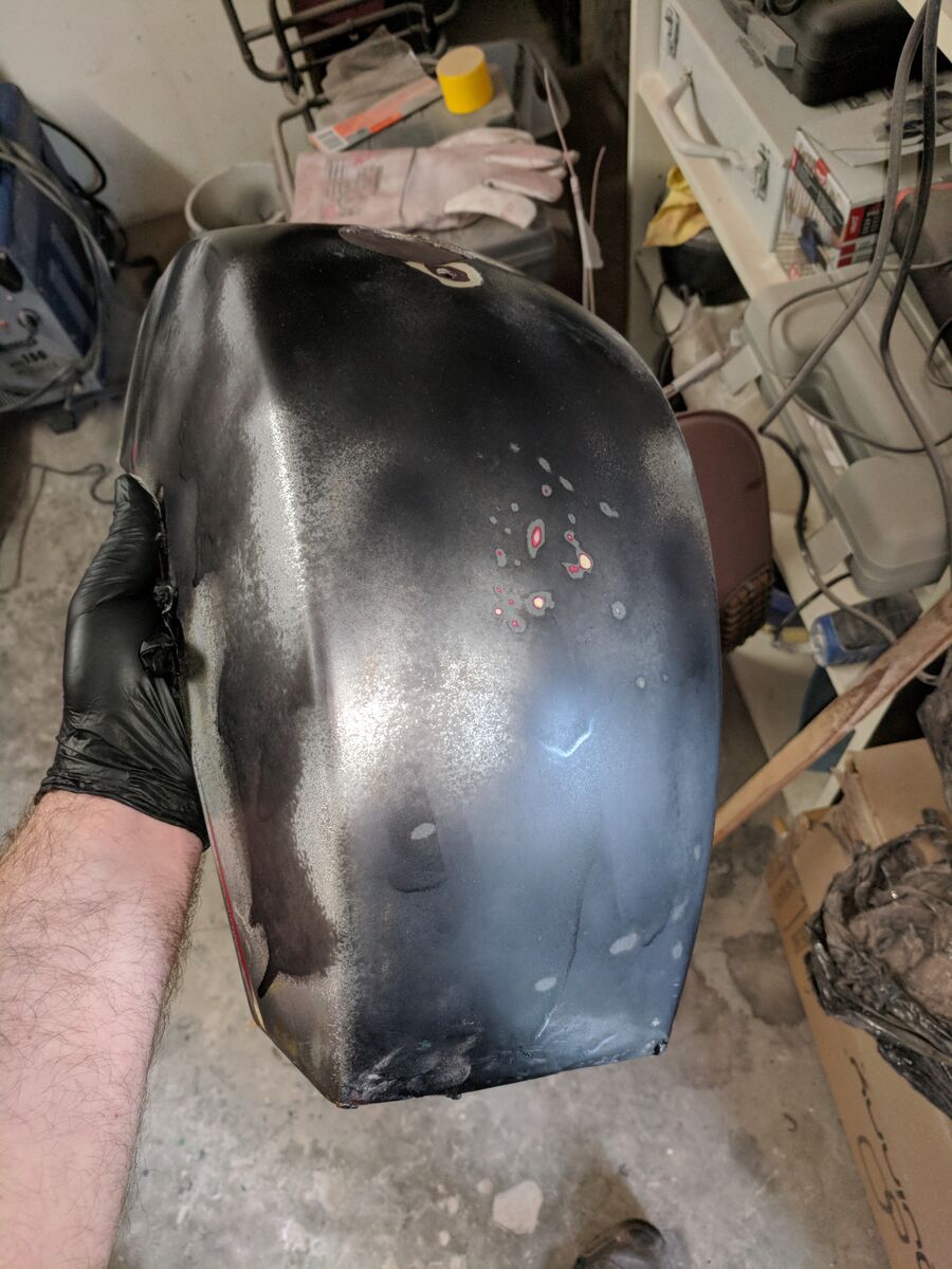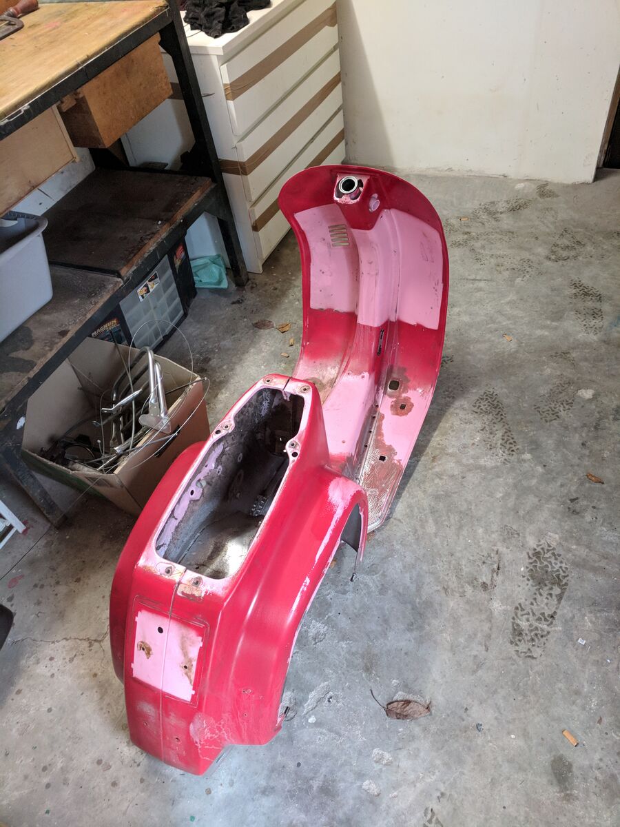 Der Rahmen wurde im Vergaserraum heftig beschnitten und verstärkt, es wurden Löcher für Blinker gebohrt