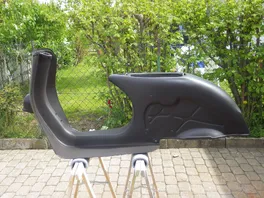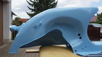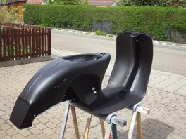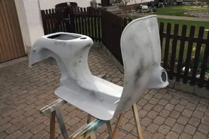 Also die bescheidene Kante mit Epoxydharz aufgefüllt und mit Matten überzogen und wie ich dann auch schon dabei war hab ich alle geflickten Teile auch noch mit einer Matte verstärkt. Das Endresultat nach dem Lackieren sieht aber richtig gut aus - so total clean geworden - die Kanten zwar noch da, aber sauber abgerundet. Wie gesagt wird eh nicht mehr original!