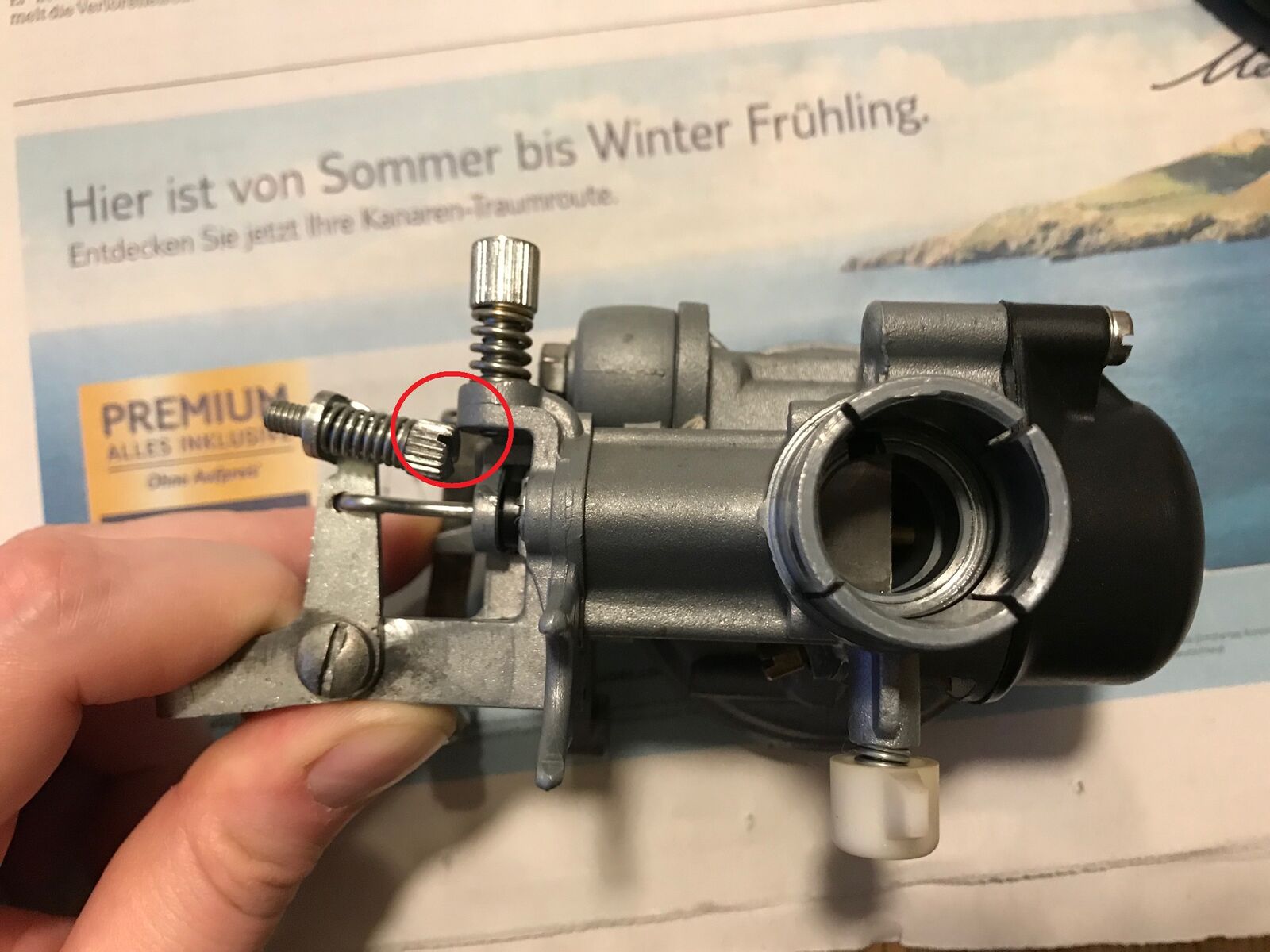 hatte meinen Vergaser gesäubert und jetzt ist er wieder zusammen aber ein kleines Problem: